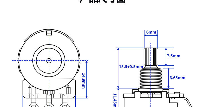 • 구리 샤프트 대형 짧은 극 15.5MM-B500K