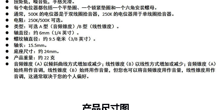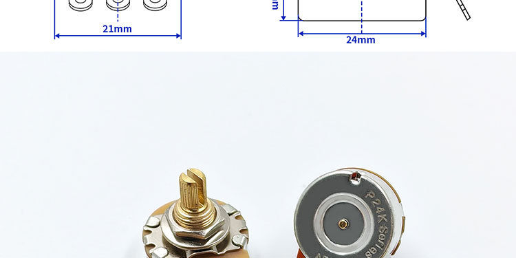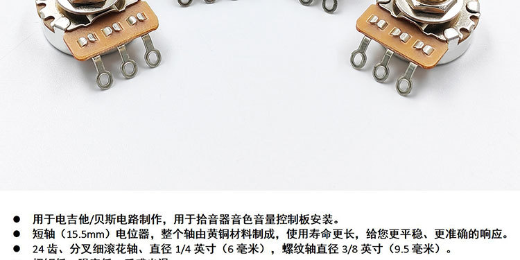 24 치아 구리 샤프트 짧은로드 전위차계 전기 기타베이스 손잡이 스위치 톤 볼륨 500K 저항 250K 도매스토어 가기