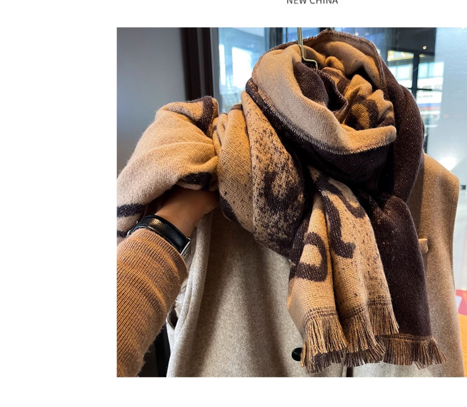 한국 활 고급 양면 그라디언트 모방 캐시미어 스카프 여성의 겨울 두꺼운 따뜻한 목 이중 사용 목도리스토어 가기