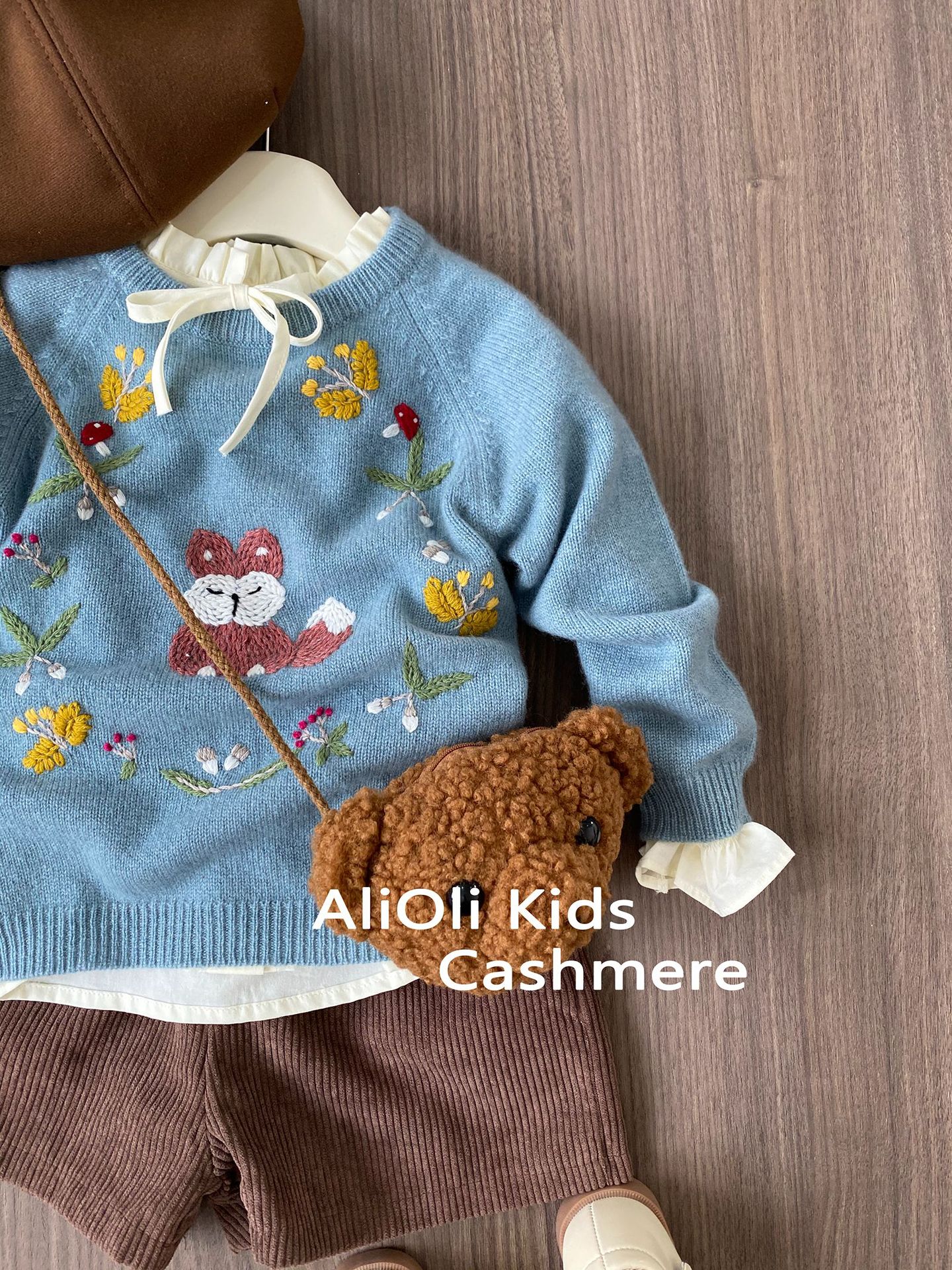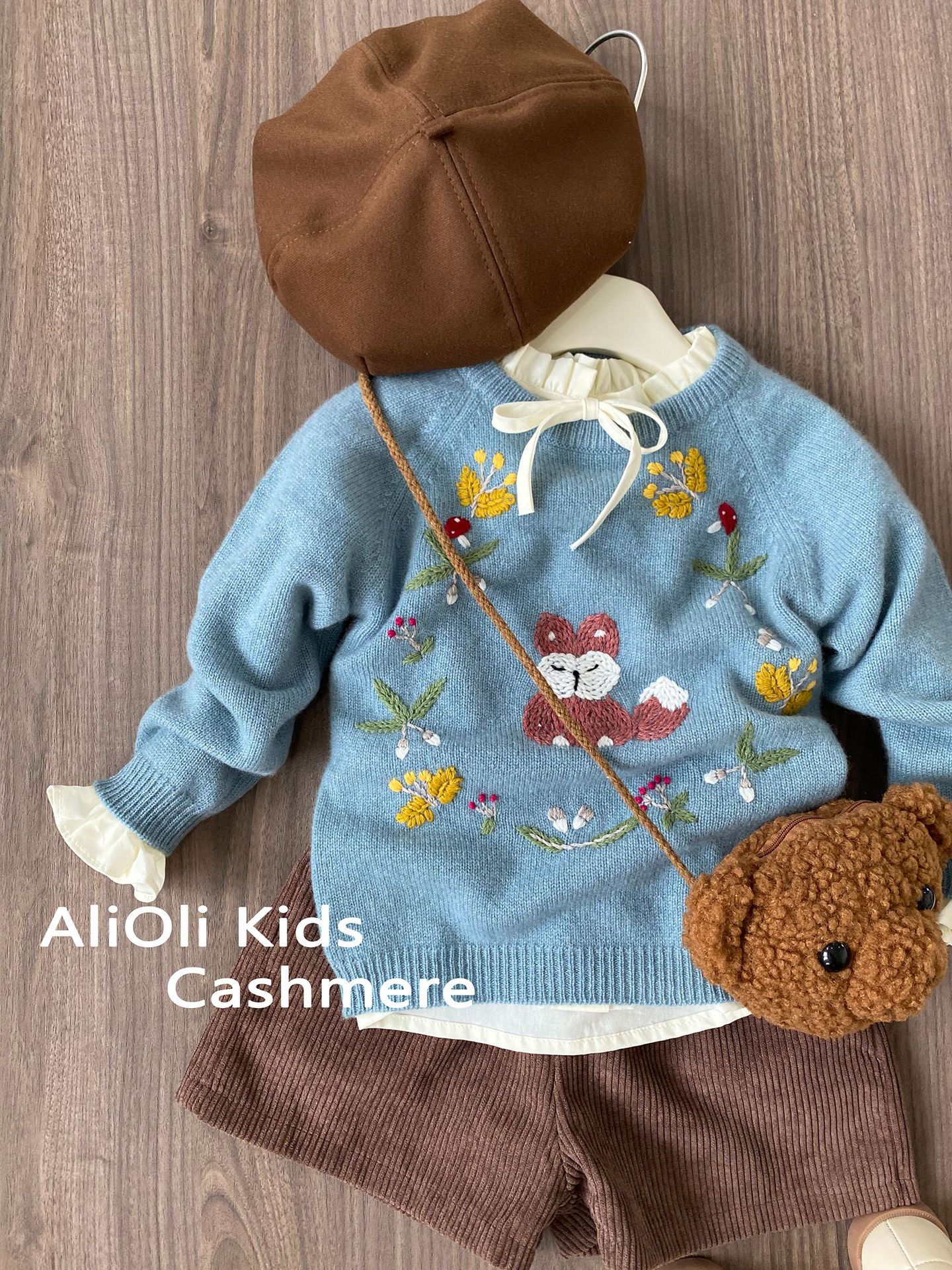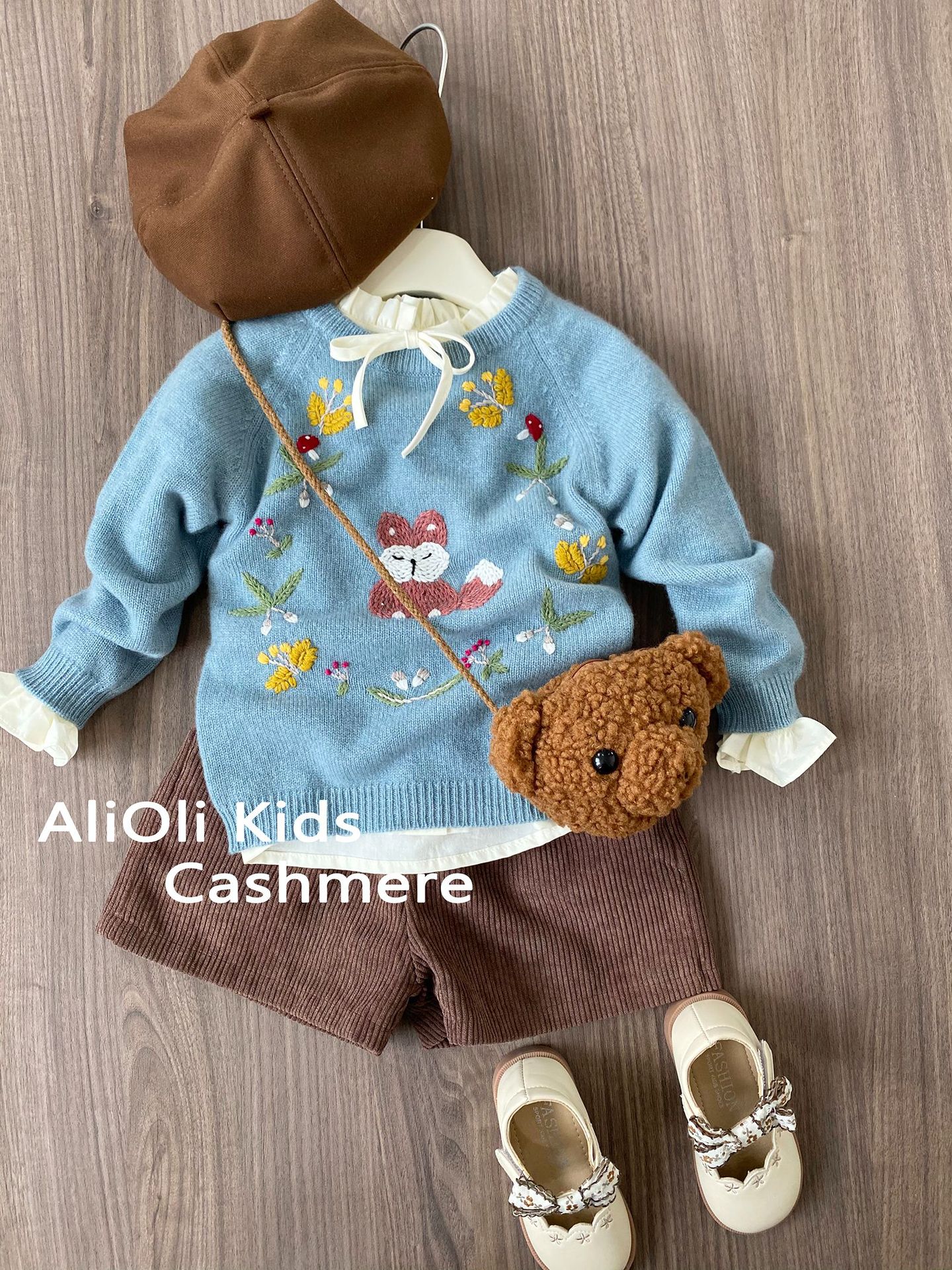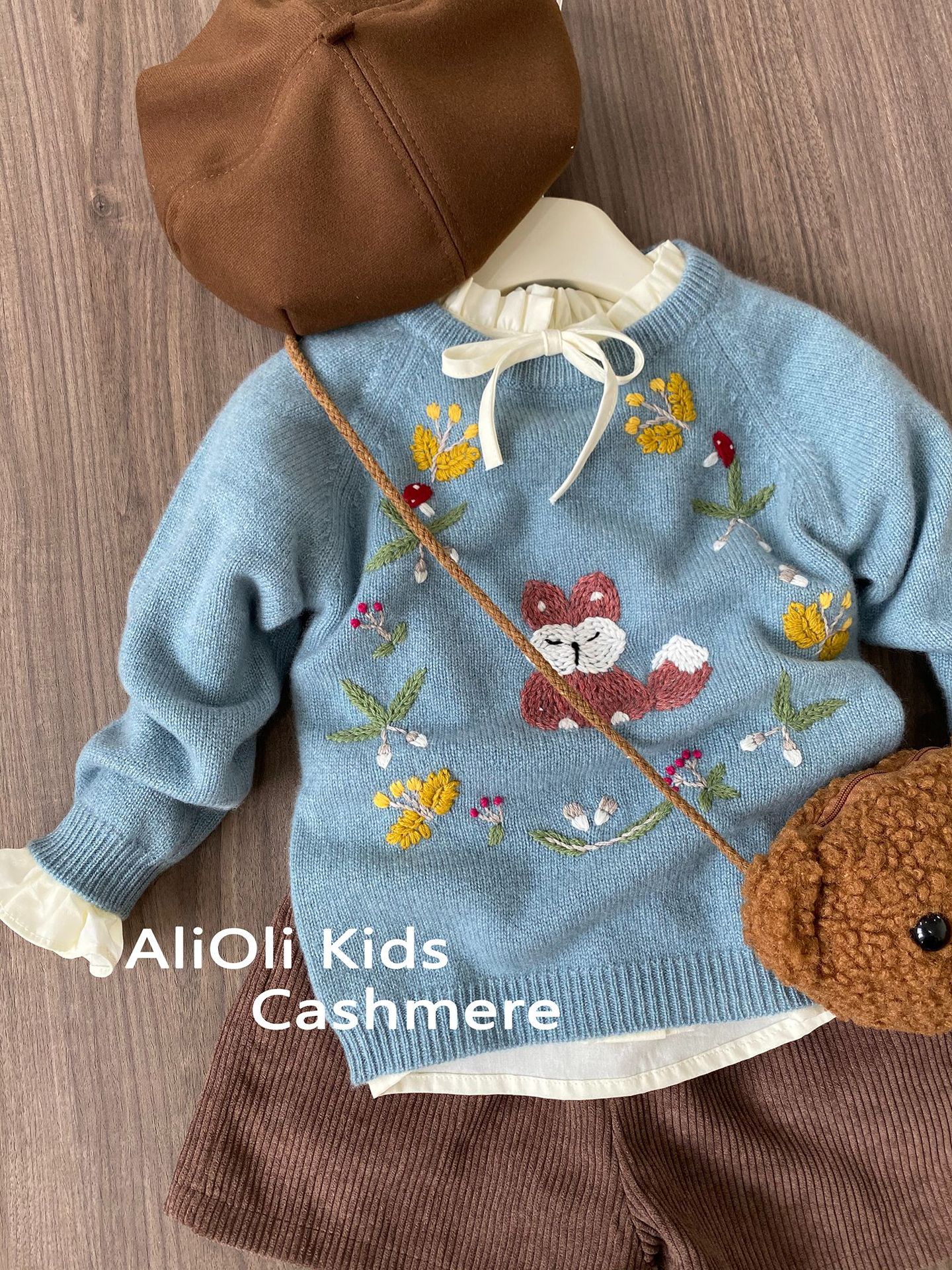 내몽골 Pengbo 캐시미어 어린이 캐시미어 크루 넥 카디건 두꺼운 수제 자수 딸기 우아한 스웨터