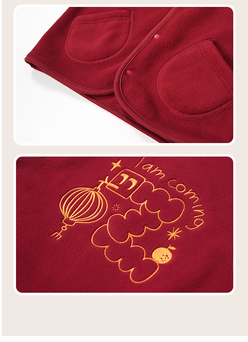 BBQB 어린이 조끼 2025 년 새해 코트 따뜻한 따뜻한 폴라 양털 소년 소녀 기모 카디건