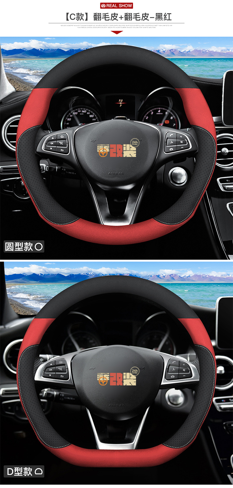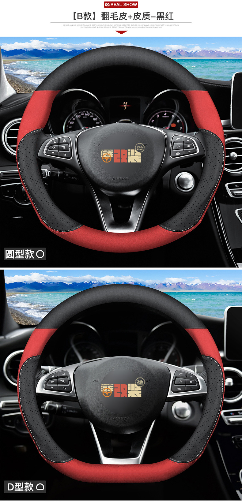 • D자형-(스웨이드+소가죽, 블랙과 레드)