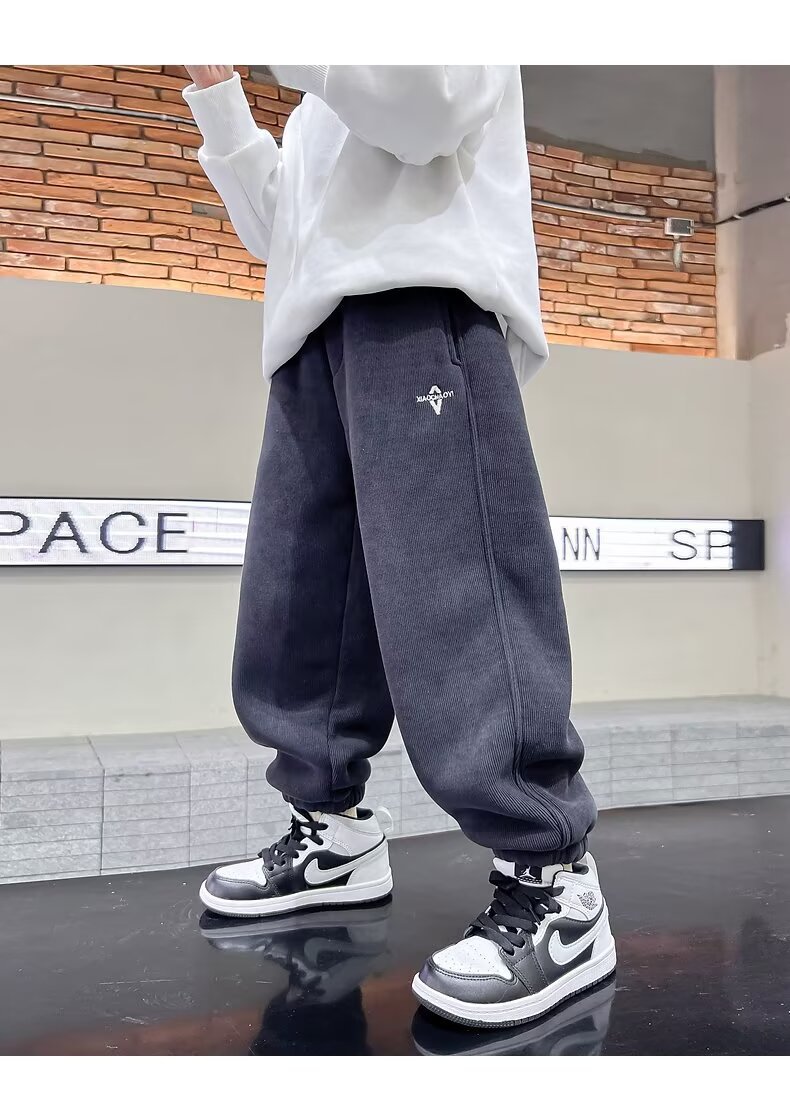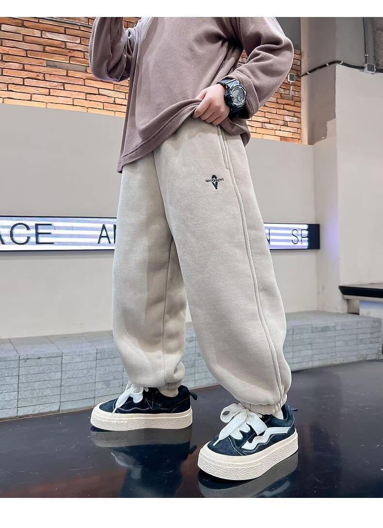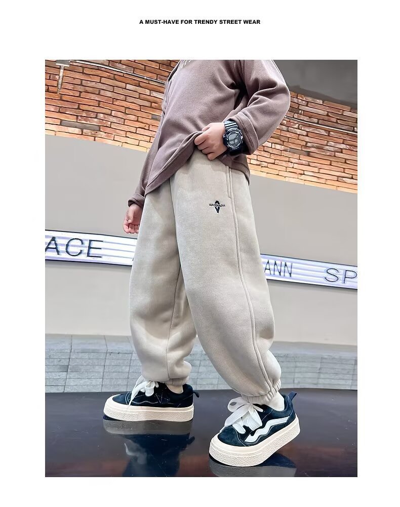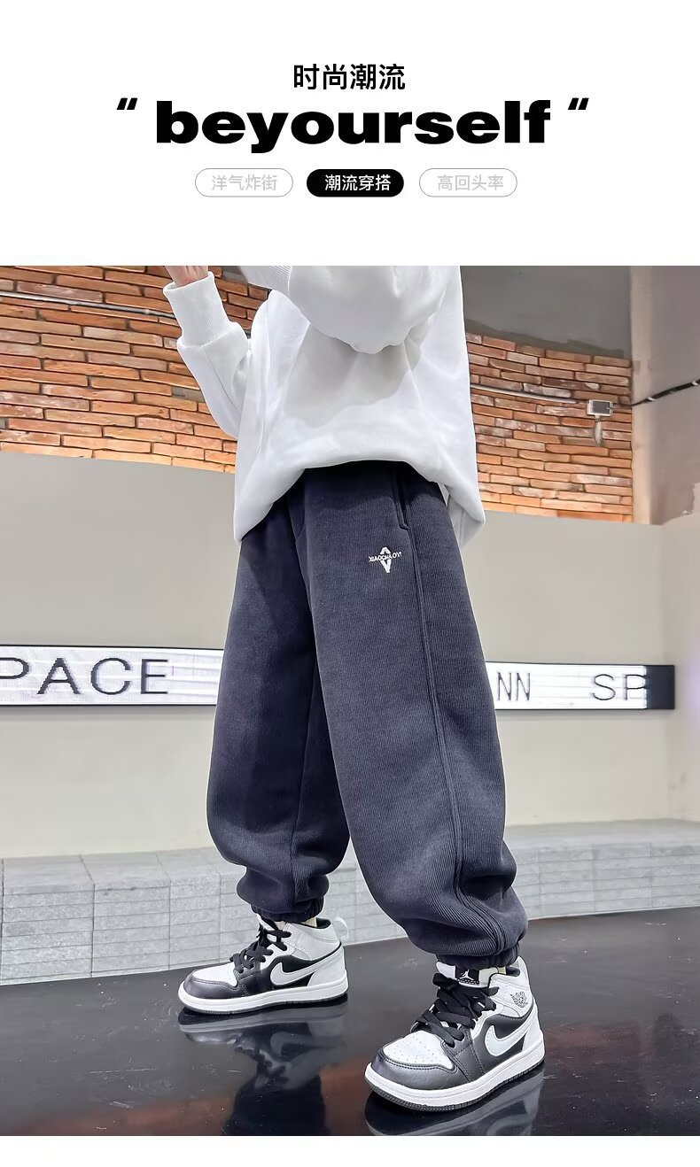 어린이 코듀로이 스포츠 바지 2024 가을과 겨울 새로운 아이들의 잘 생긴 기모 따뜻한 캐주얼 바지 조수스토어 가기