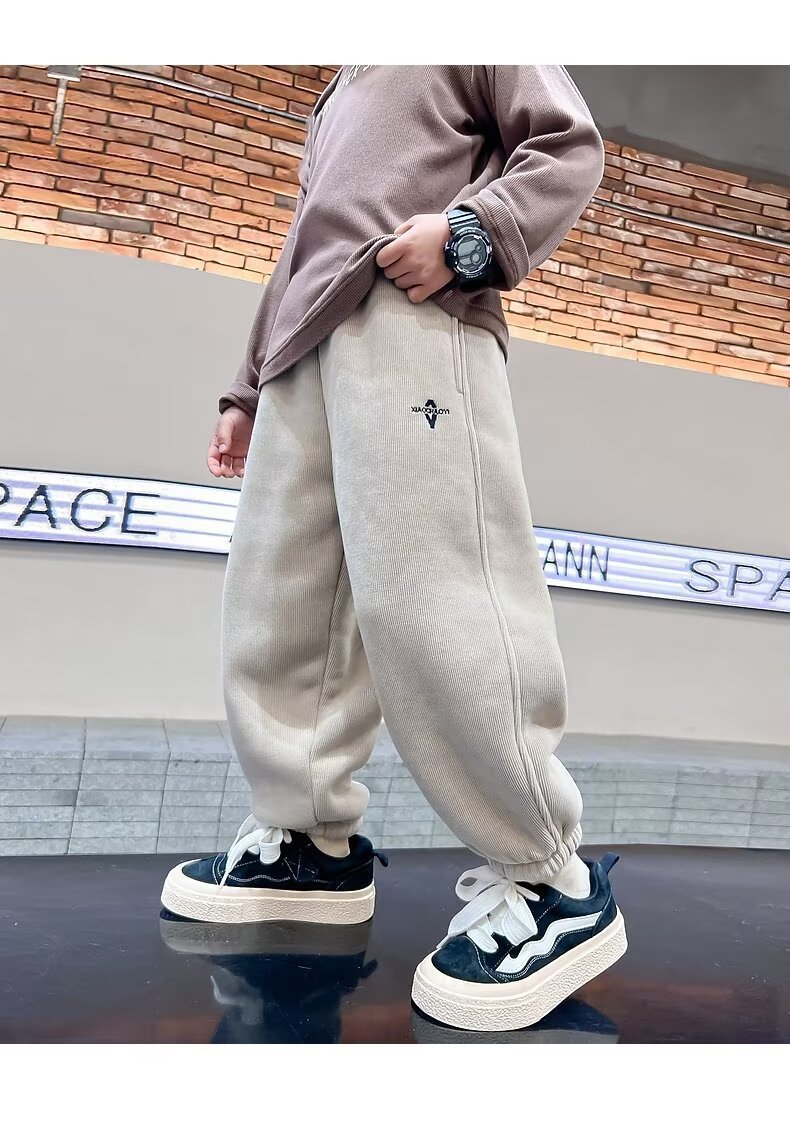 어린이 코듀로이 스포츠 바지 2024 가을과 겨울 새로운 아이들의 잘 생긴 기모 따뜻한 캐주얼 바지 조수