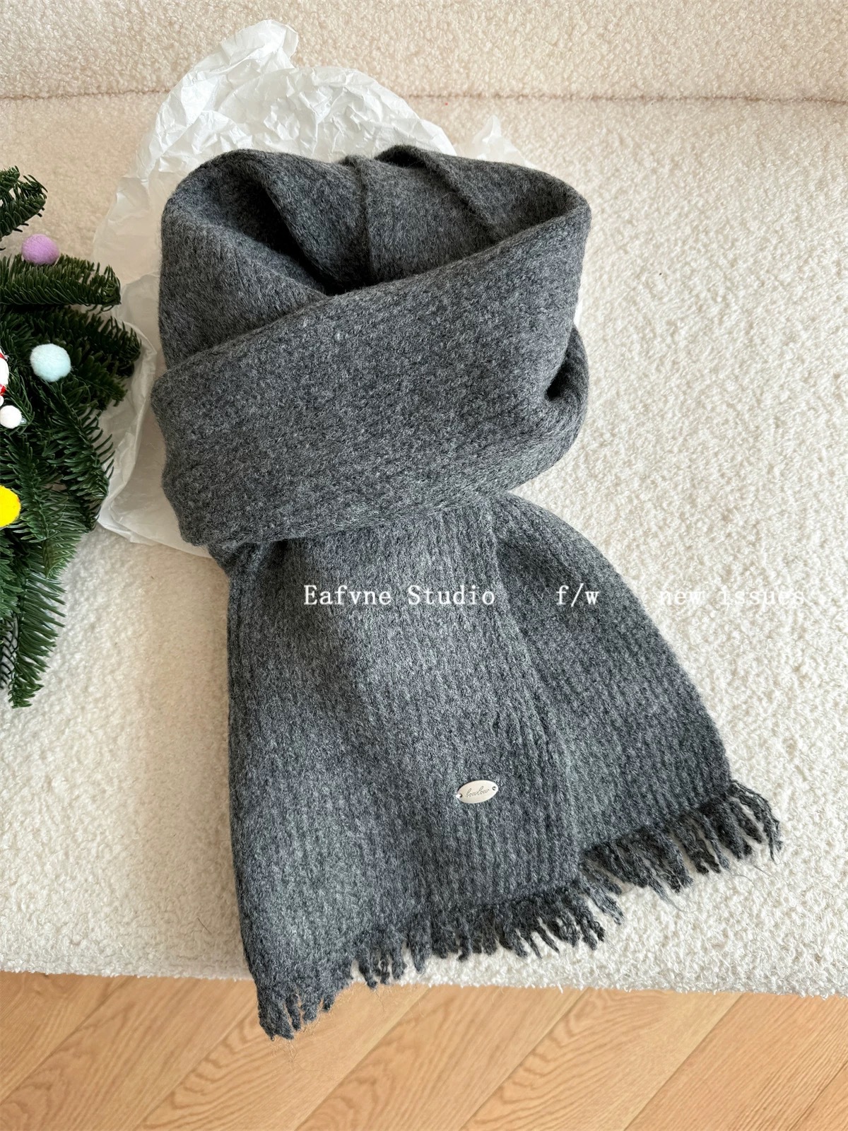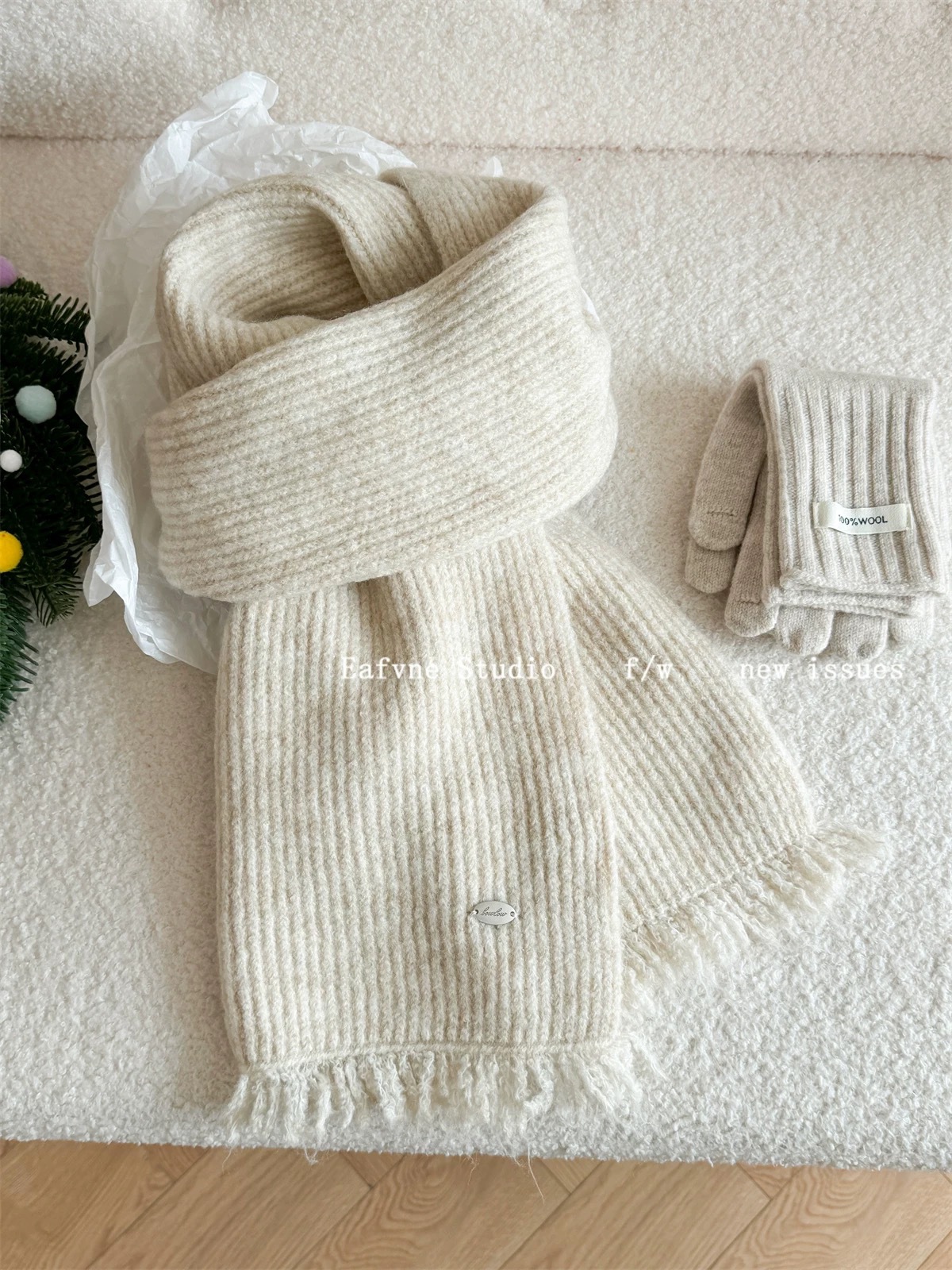 양모 블렌드 술 레드 스카프 여성의 겨울 하이 엔드 두꺼운 모피 가장자리 니트 따뜻한 목 커플의 국경 간 스카프