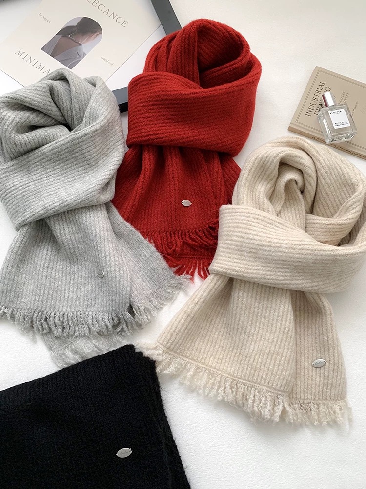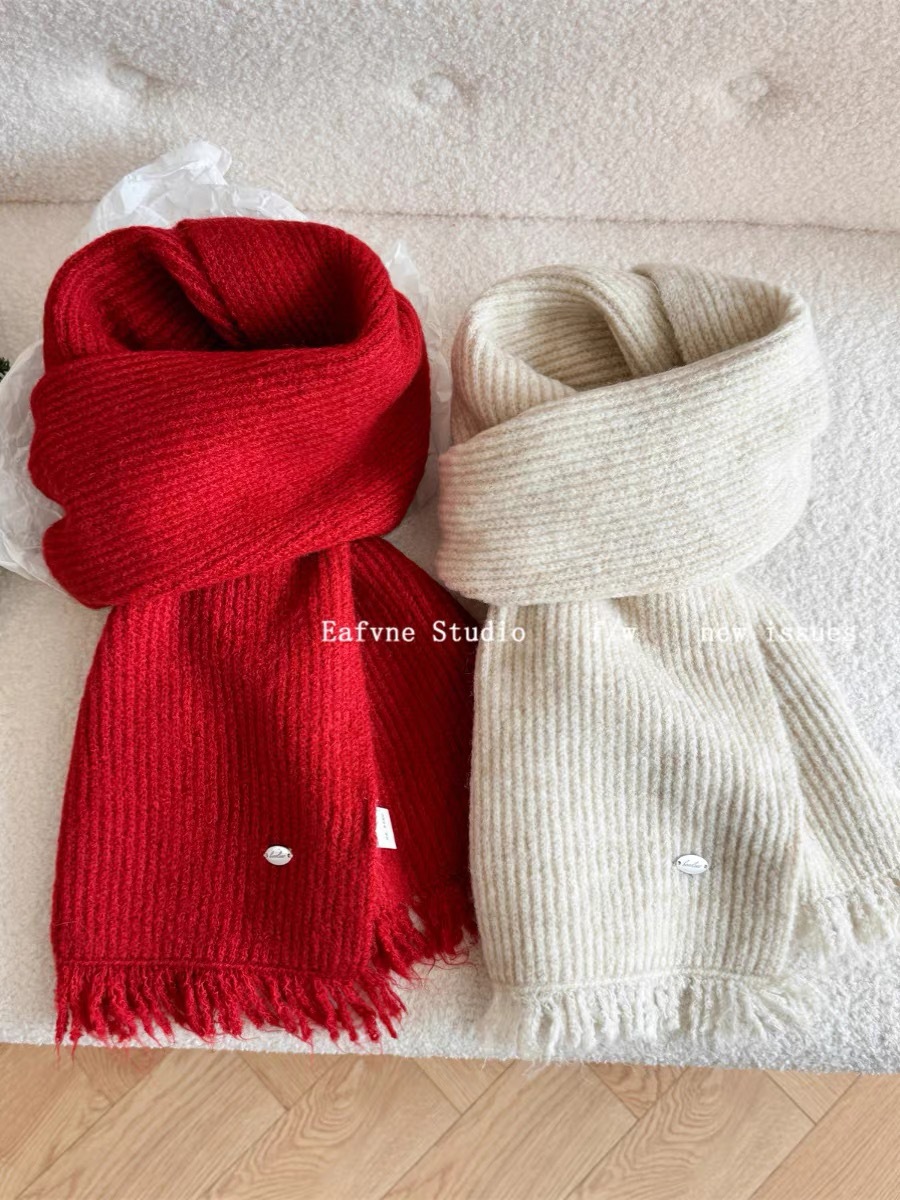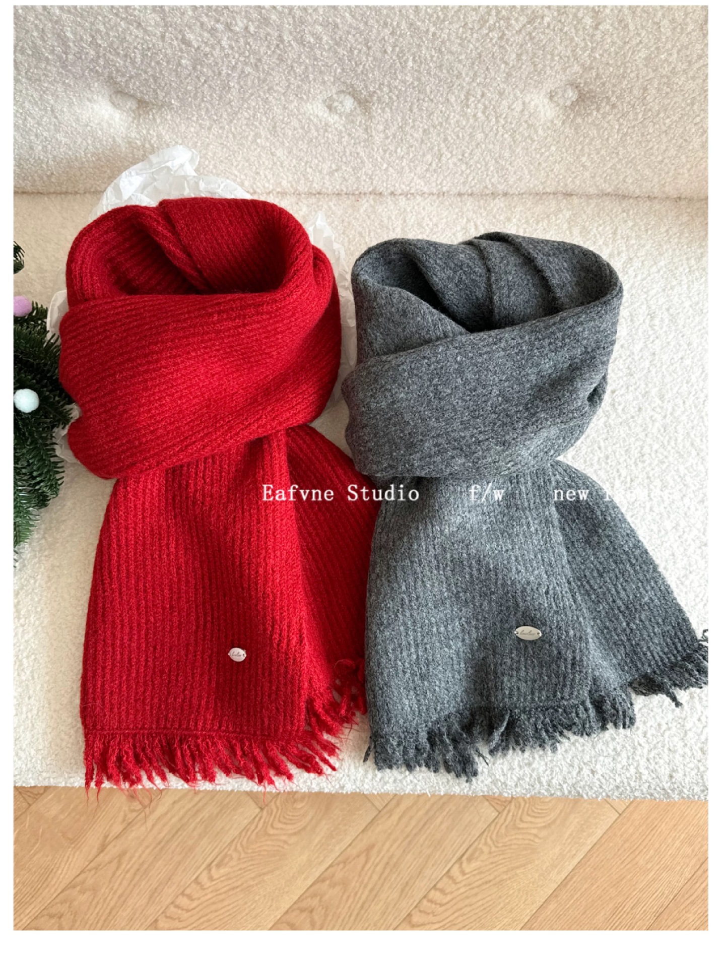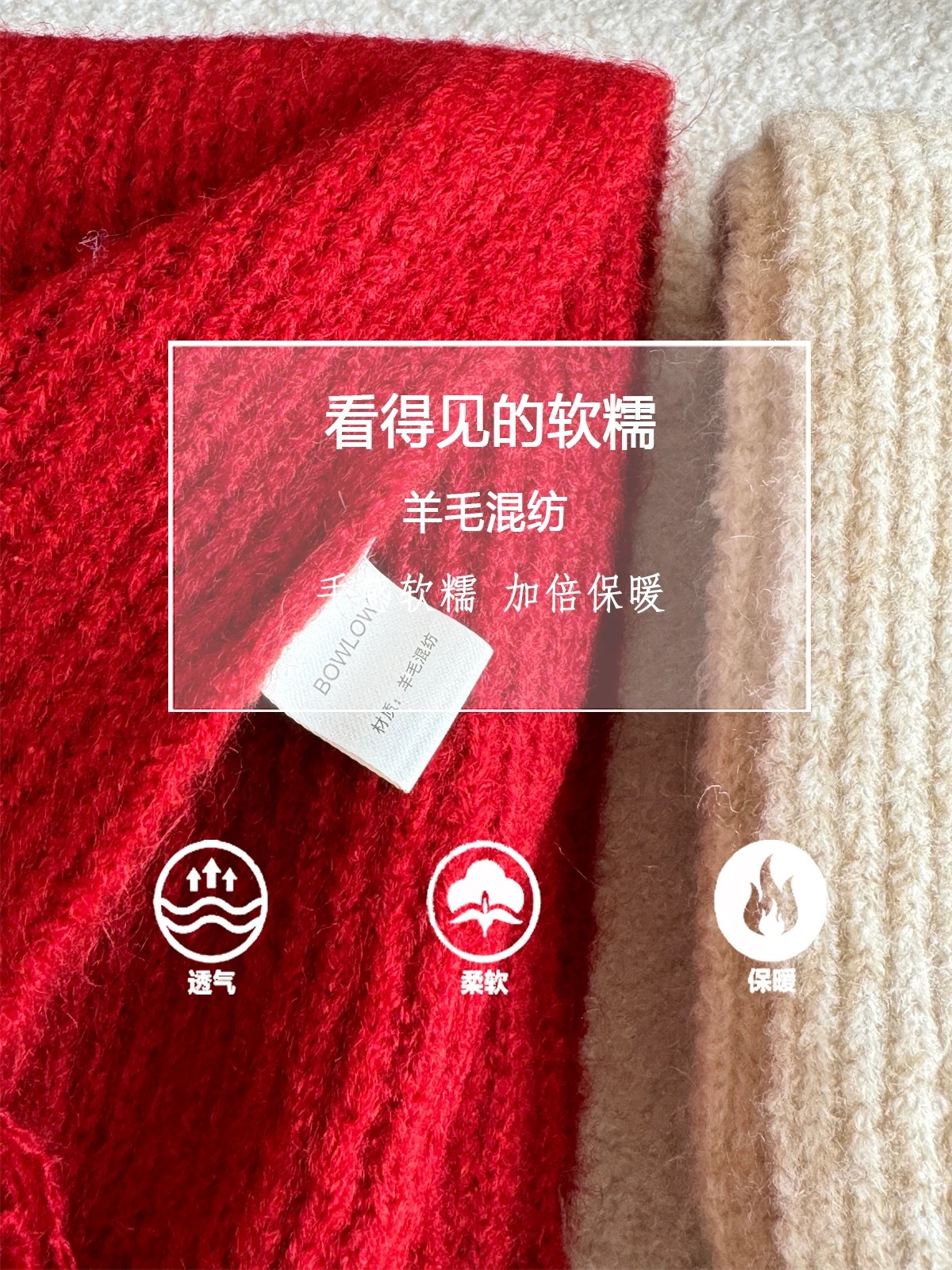 양모 블렌드 술 레드 스카프 여성의 겨울 하이 엔드 두꺼운 모피 가장자리 니트 따뜻한 목 커플의 국경 간 스카프스토어 가기