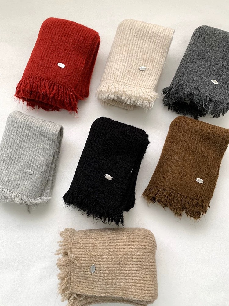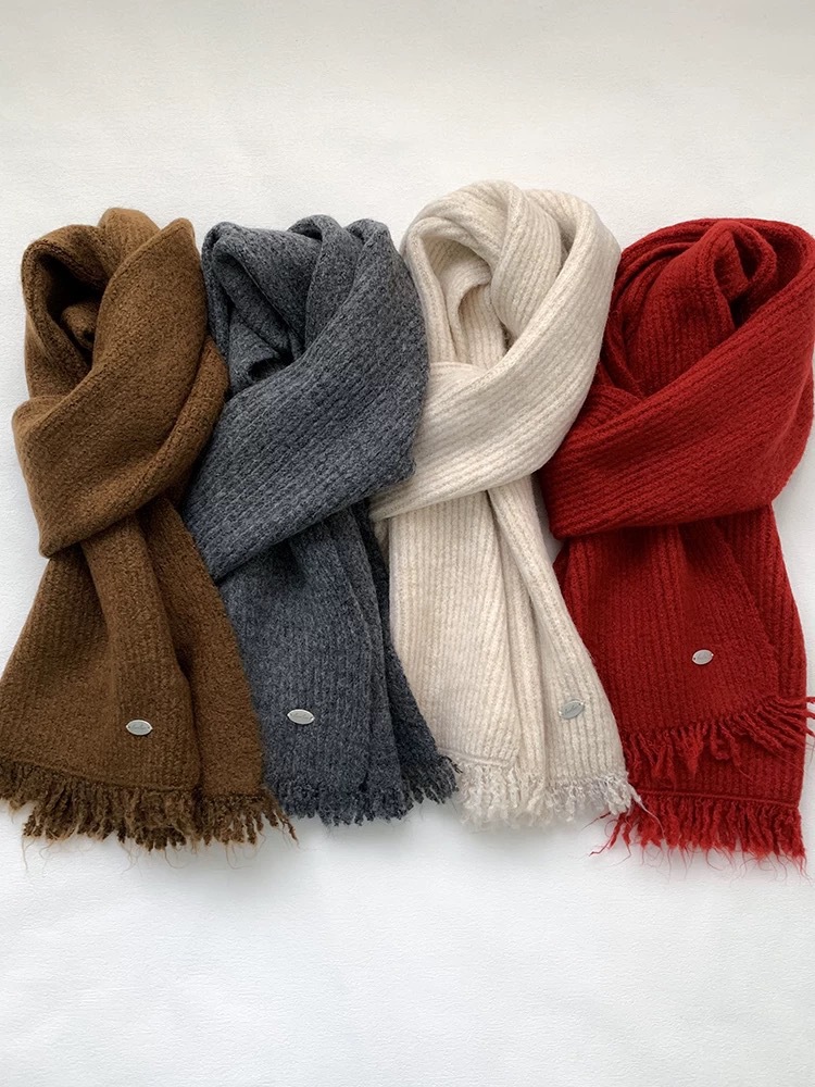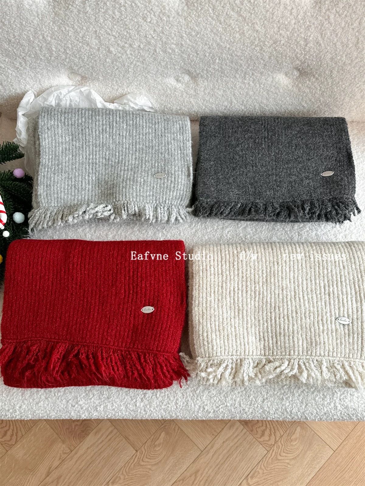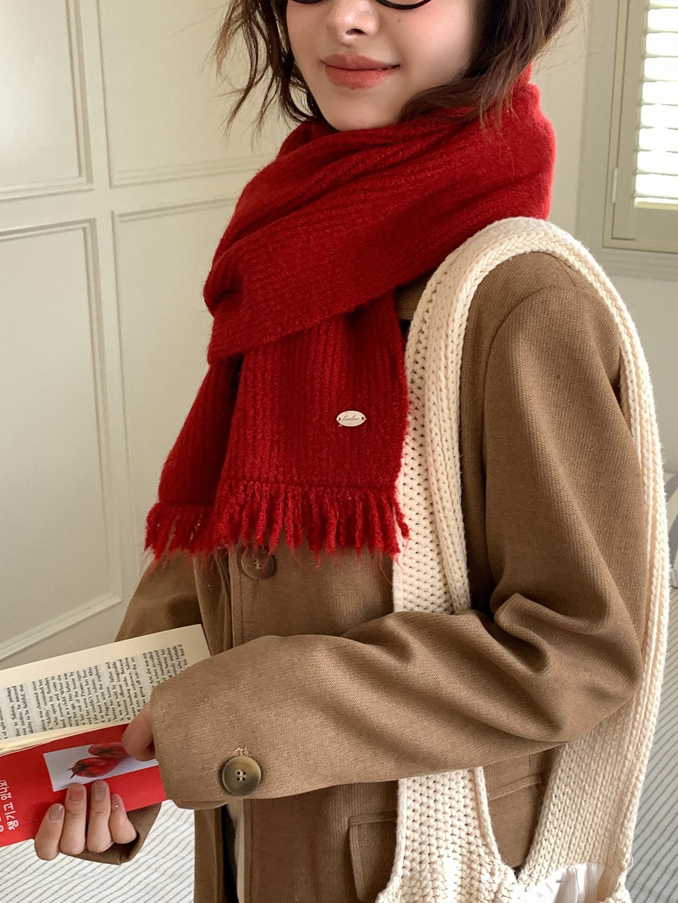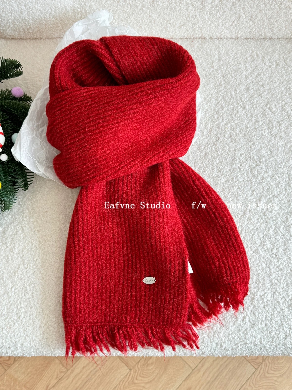 양모 블렌드 술 레드 스카프 여성의 겨울 하이 엔드 두꺼운 모피 가장자리 니트 따뜻한 목 커플의 국경 간 스카프스토어 가기