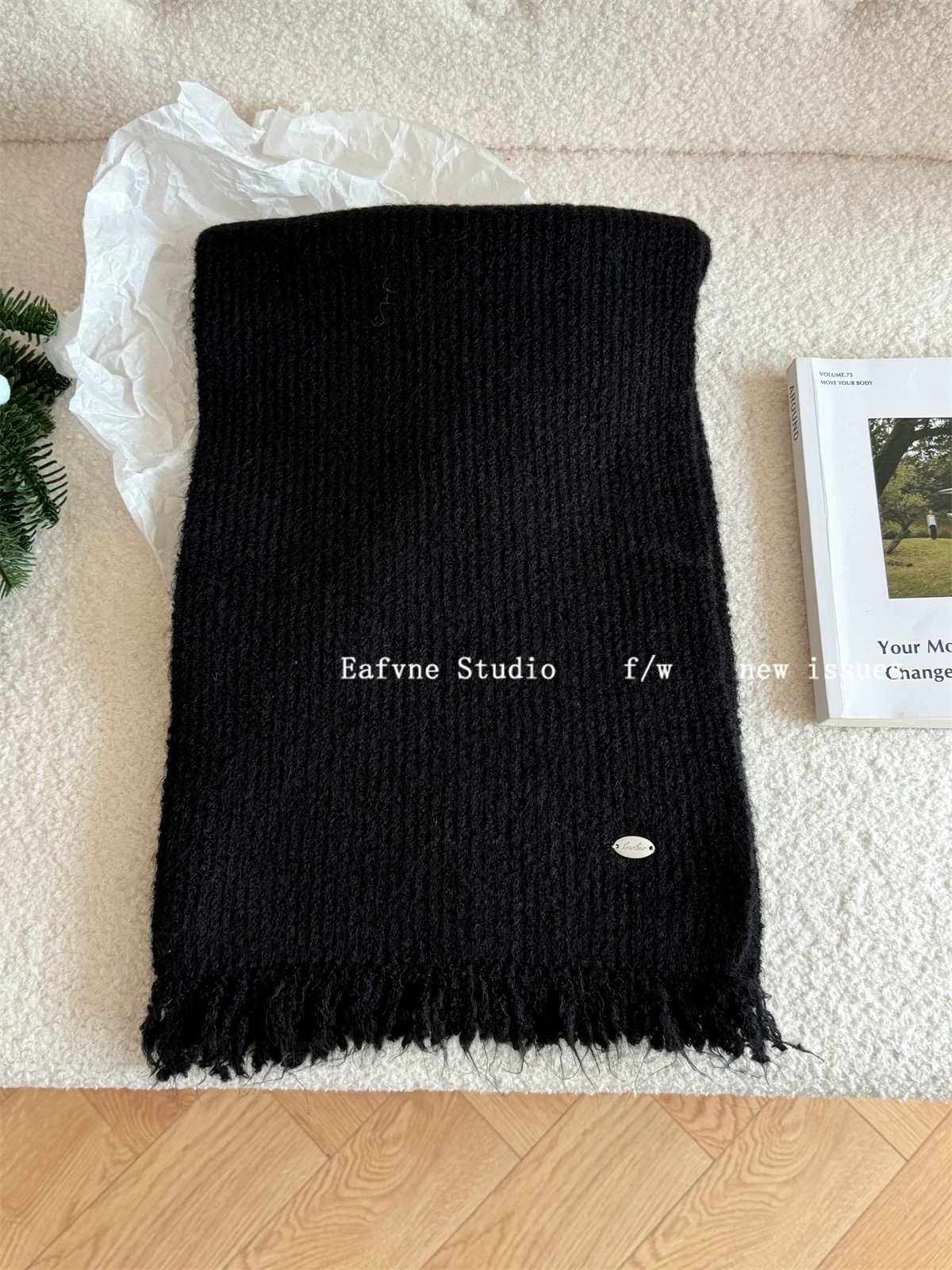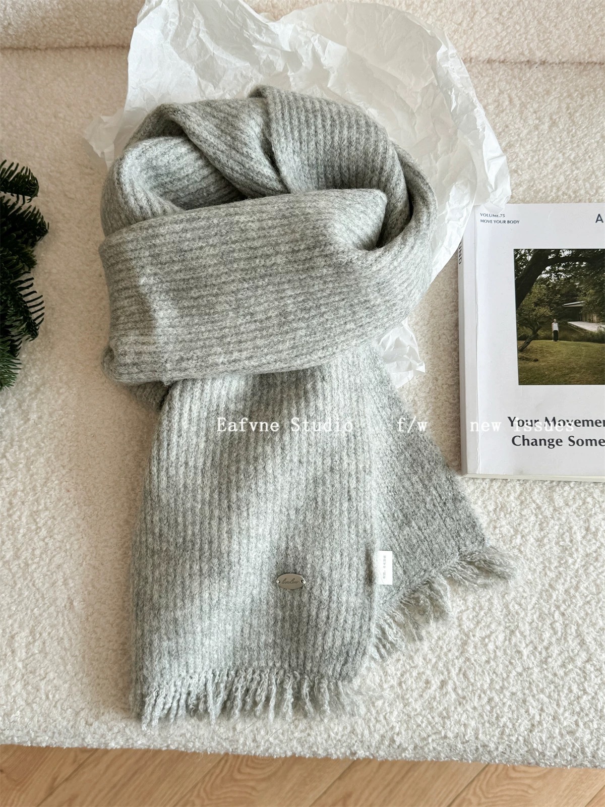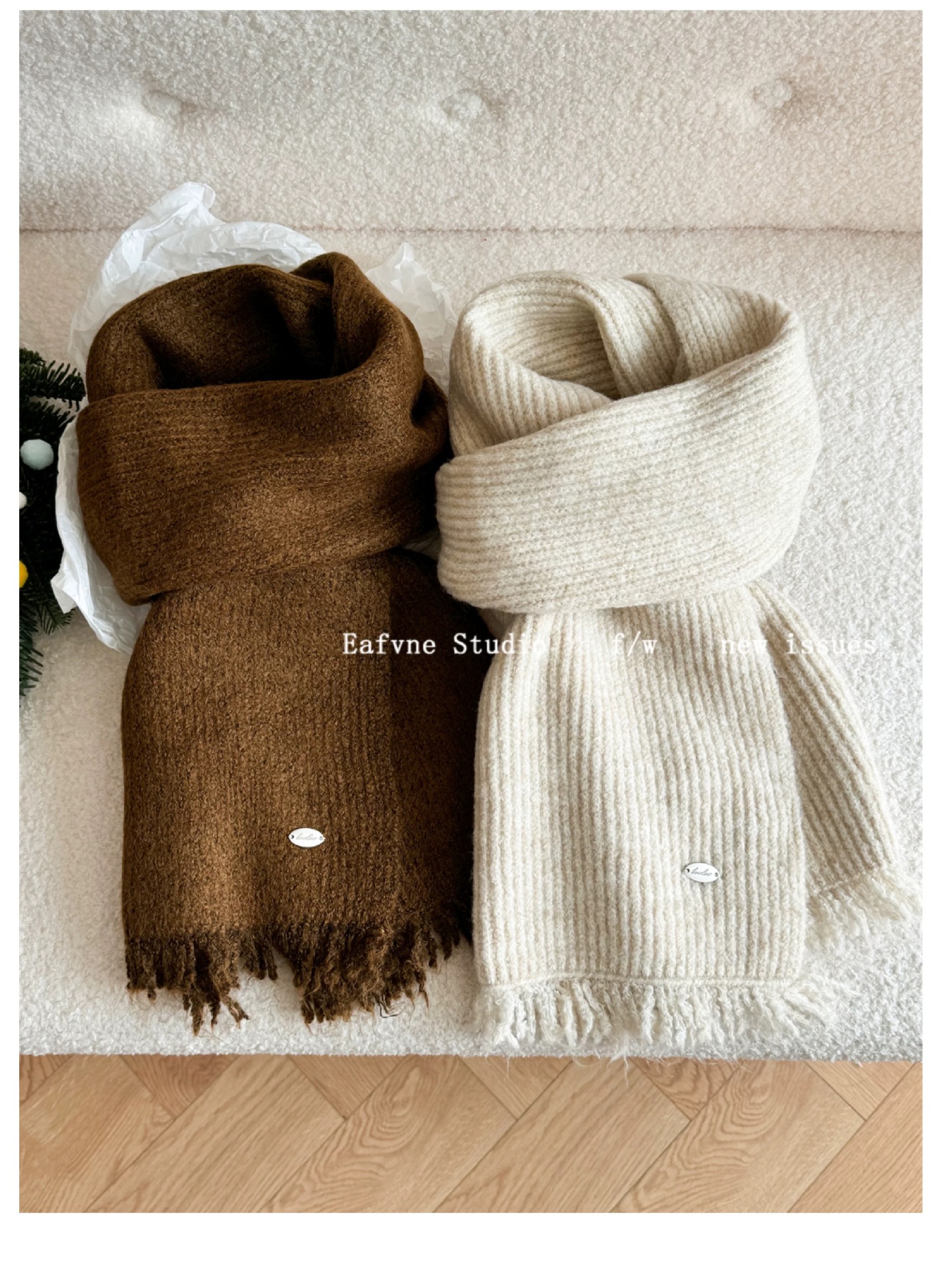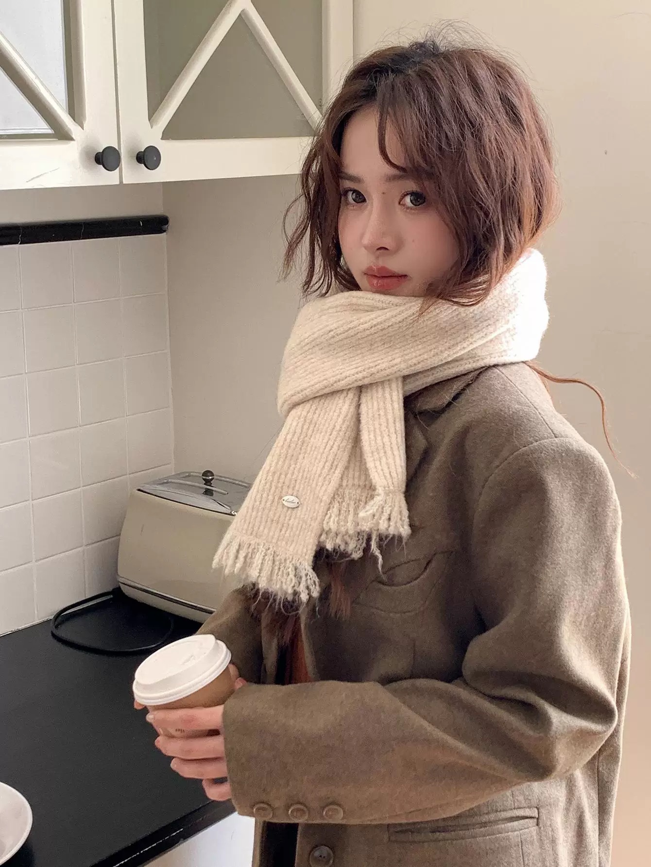 양모 블렌드 술 레드 스카프 여성의 겨울 하이 엔드 두꺼운 모피 가장자리 니트 따뜻한 목 커플의 국경 간 스카프스토어 가기