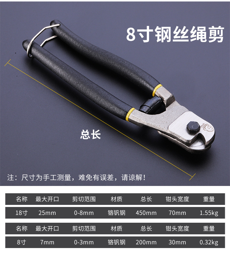 도매 산업 등급 와이어 로프 가위 볼트 커터 잠금 가위 펜치 노동 절약 8 인치 비 산란 스트랜드 와이어 가위스토어 가기