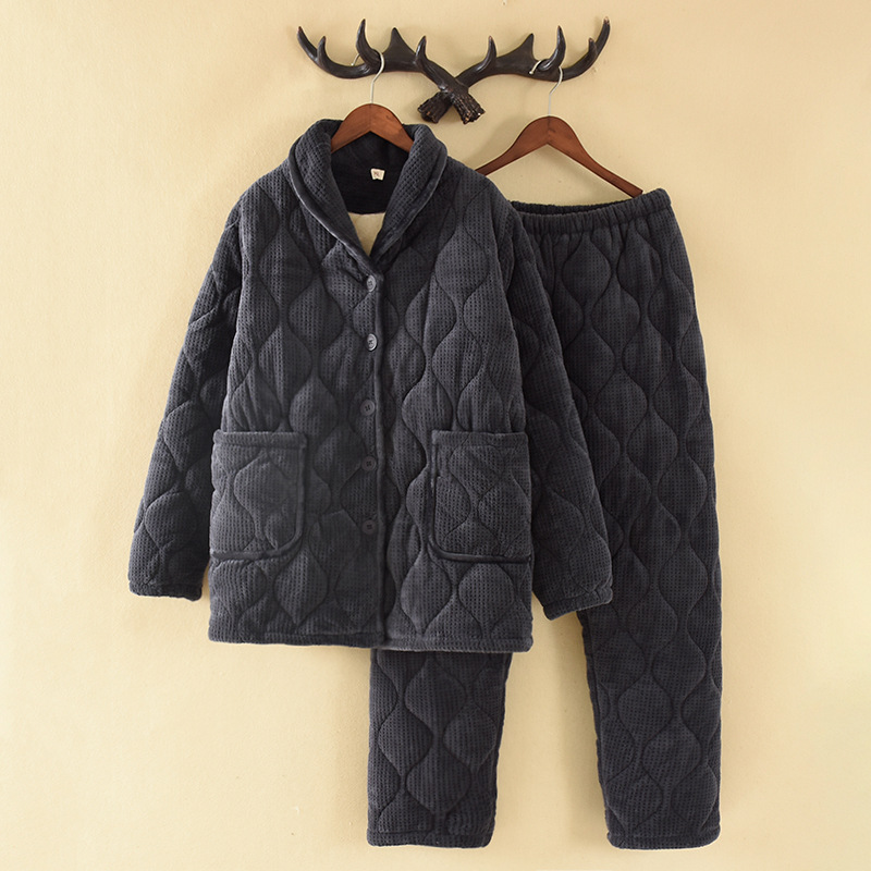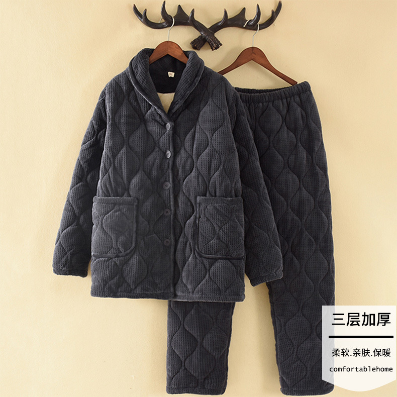 커플 잠옷 남자 2024 새로운 3 층 여성 면화 기모 산호 양털 플란넬 홈 옷 가을과 겨울