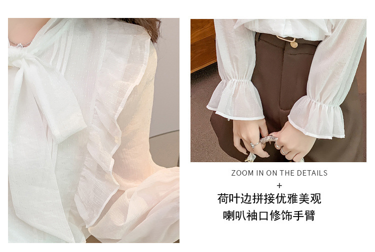 벨벳 리본 셔츠 여성용 2025 가을 겨울 신상 루즈핏 달콤한 쉬폰 셔츠 벨소매 셔츠 다용도 상의스토어 가기