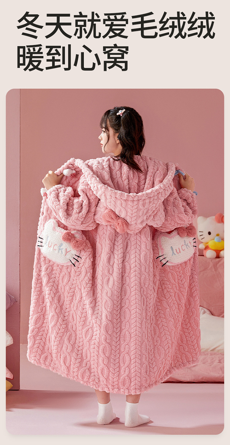 산호 양털 긴 어린이 잠옷 소녀 잠옷 2024 플란넬 홈 의류 기모 잠옷스토어 가기
