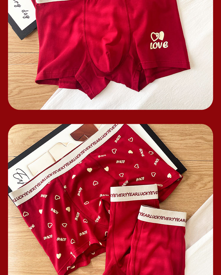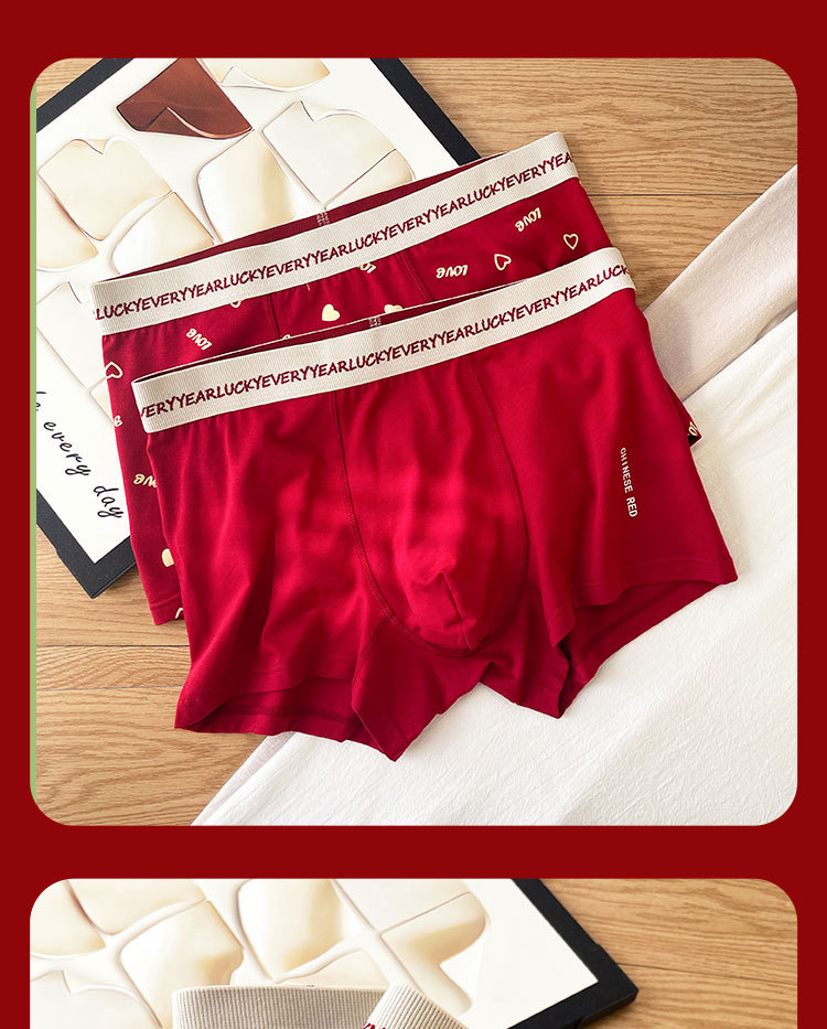 남자 플러스 사이즈 모달 코튼 브닝 니안 레드 속옷 루즈 복서 반바지 웨딩 선물 소년 복서 반바지스토어 가기