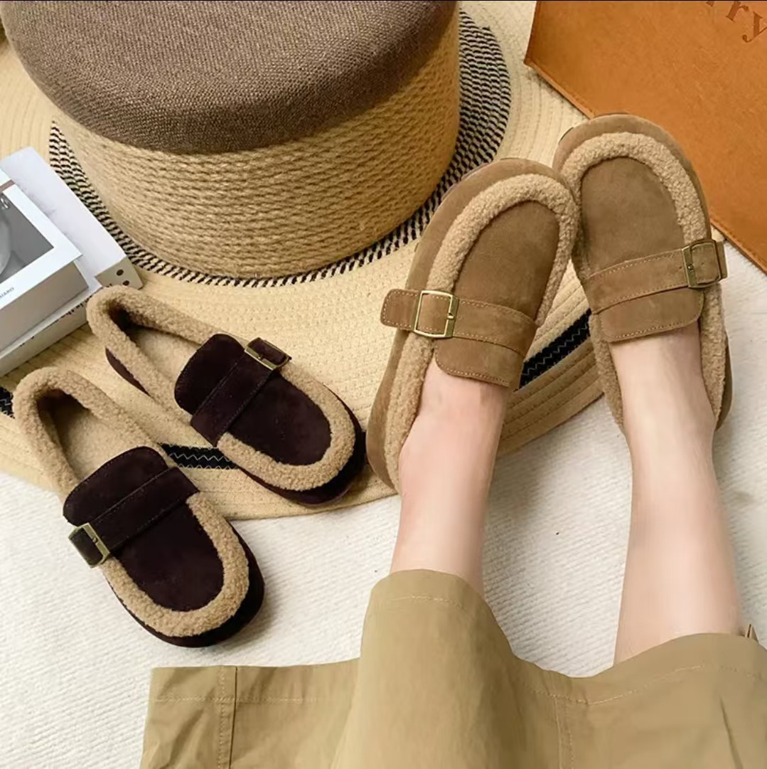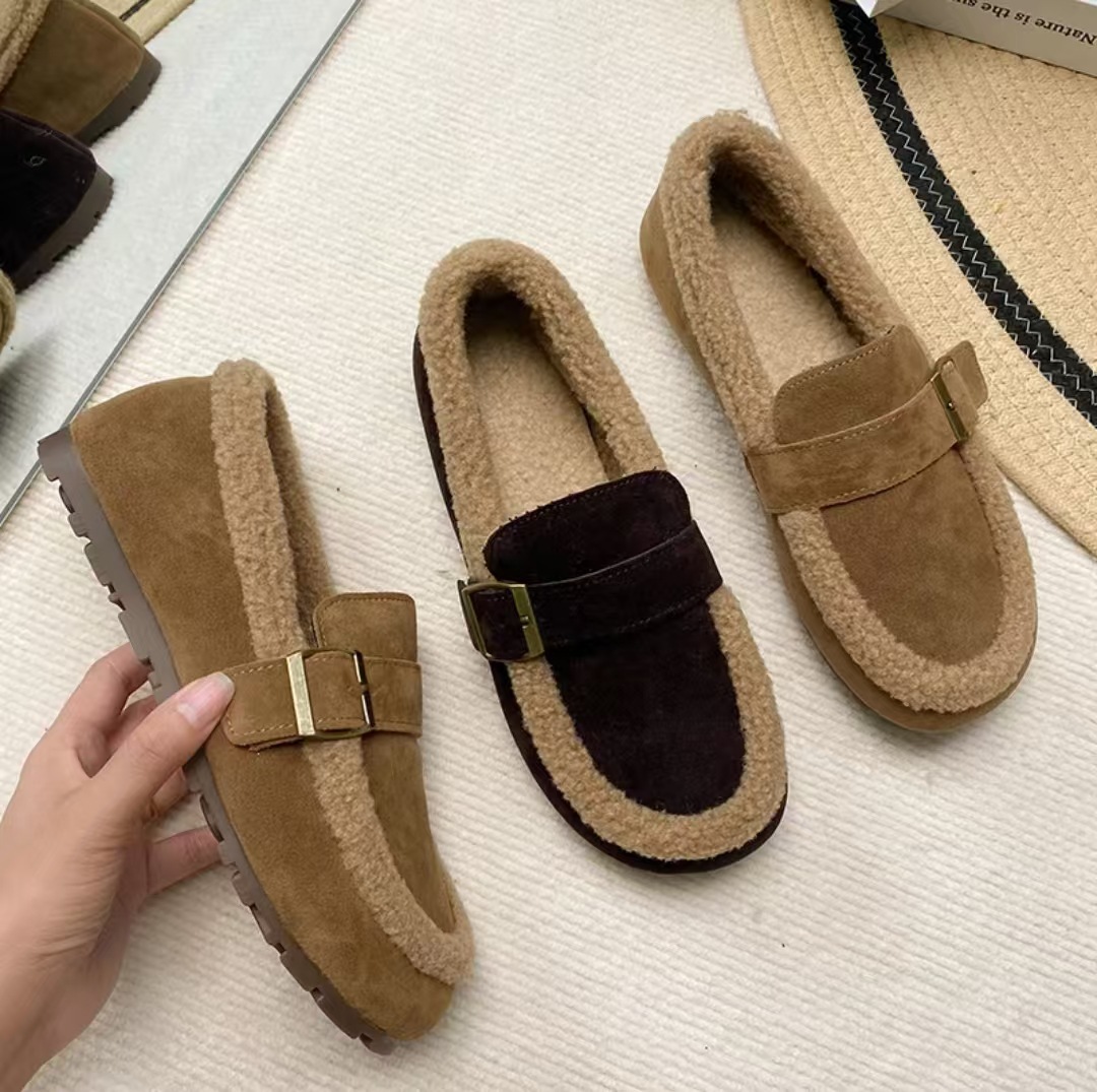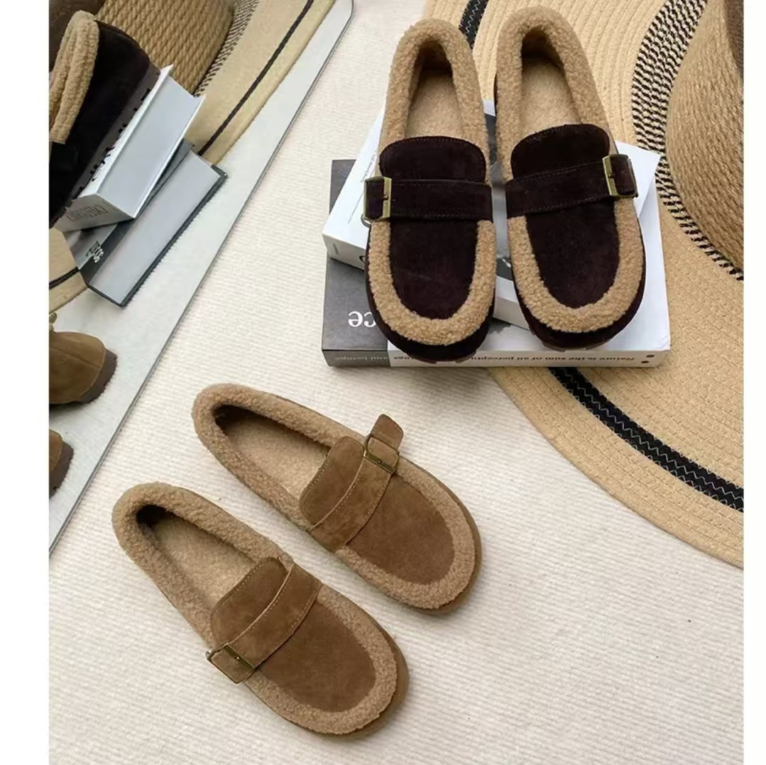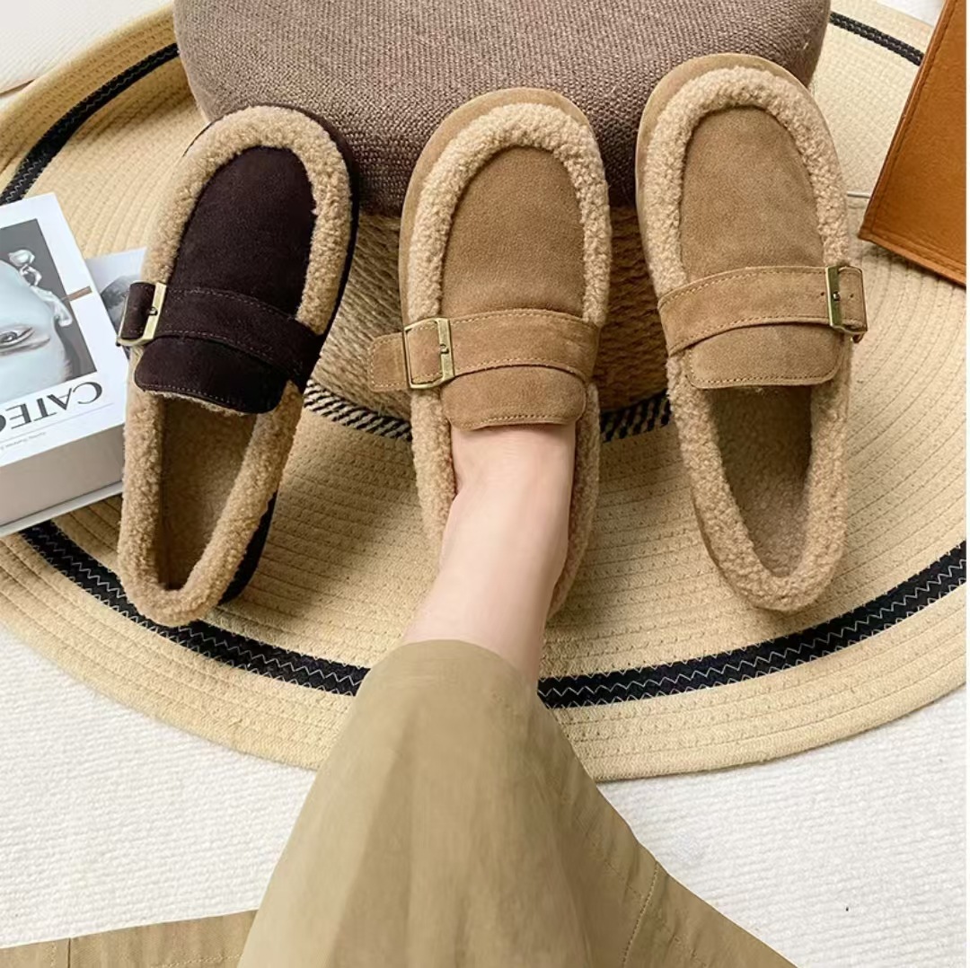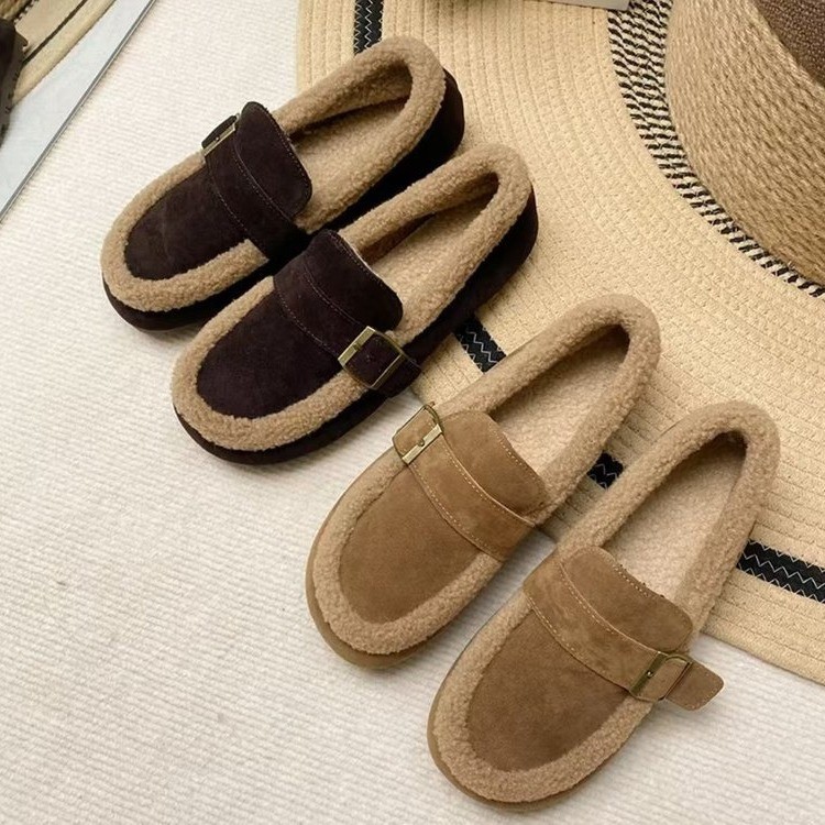 2025년 신상 가을 겨울 여성용 털신, 겨울용 레트로 면화 신발, 비켄 슈즈, 여성용 플러스 벨벳 보온 신발