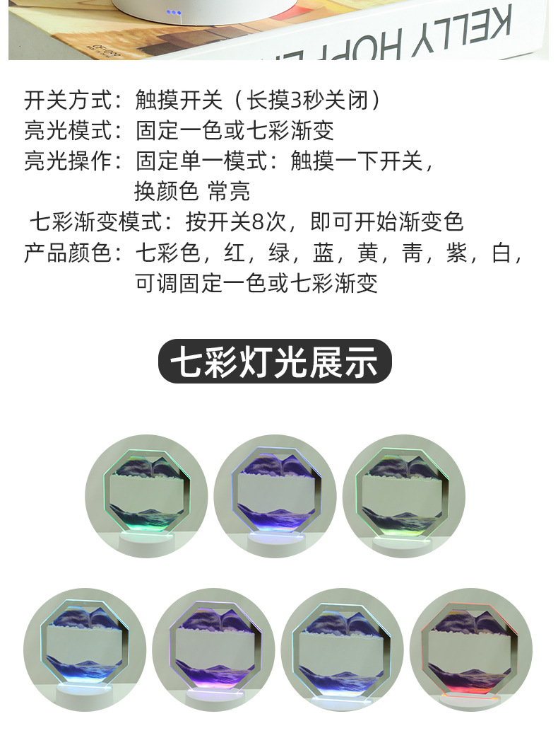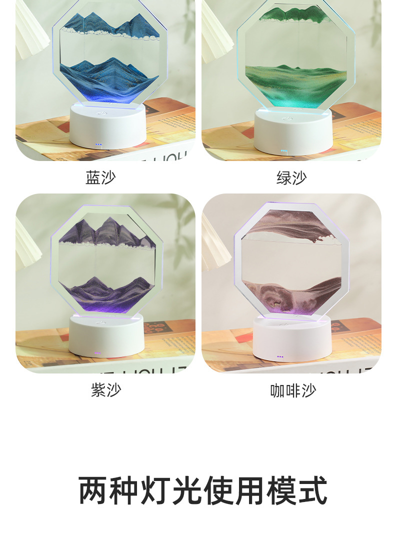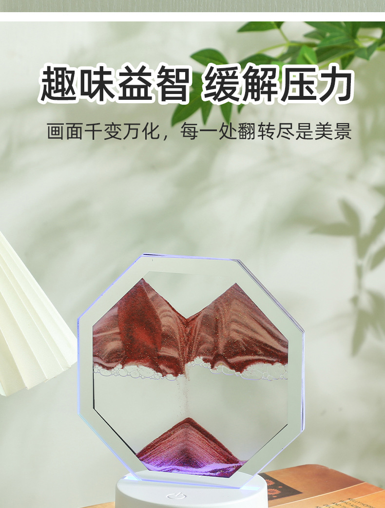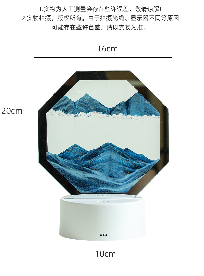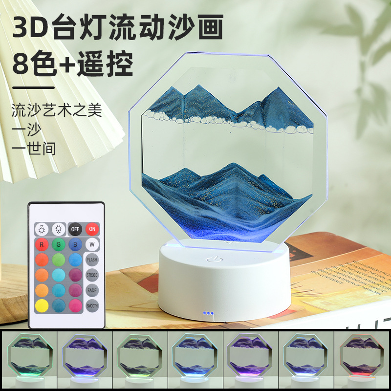 국경 3D 퀵 샌드 그림 팔각형 야간 조명 장식품 동적 모래 시계 테이블 램프 3 차원 창조적 인 감압 원격 제어 터치스토어 가기