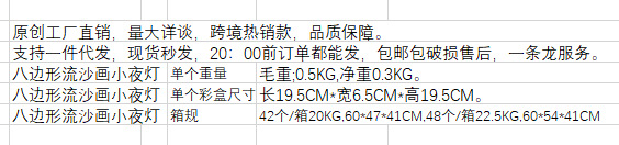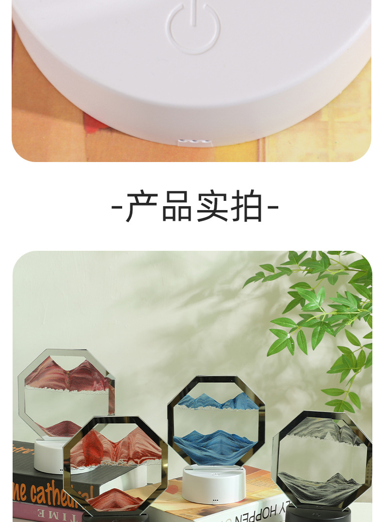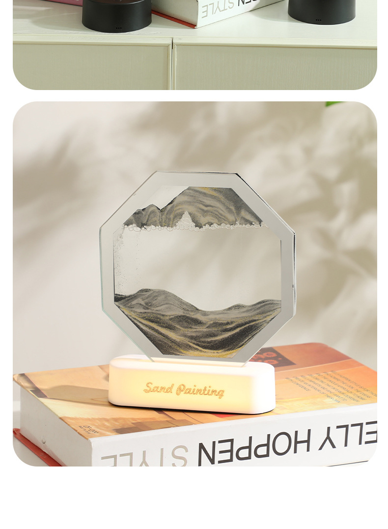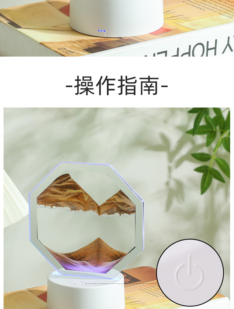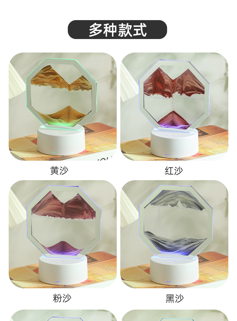 국경 3D 퀵 샌드 그림 팔각형 야간 조명 장식품 동적 모래 시계 테이블 램프 3 차원 창조적 인 감압 원격 제어 터치스토어 가기