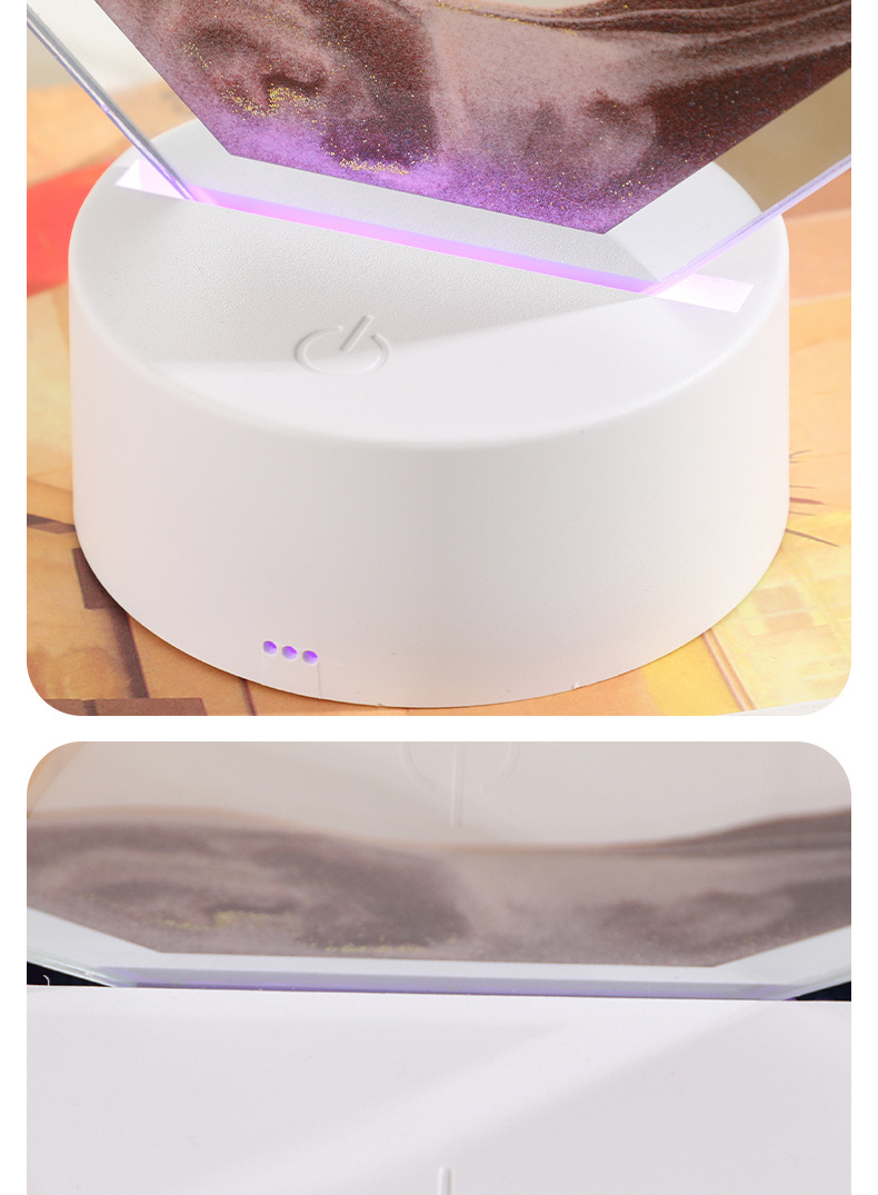 국경 3D 퀵 샌드 그림 팔각형 야간 조명 장식품 동적 모래 시계 테이블 램프 3 차원 창조적 인 감압 원격 제어 터치