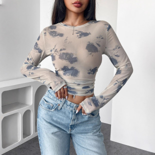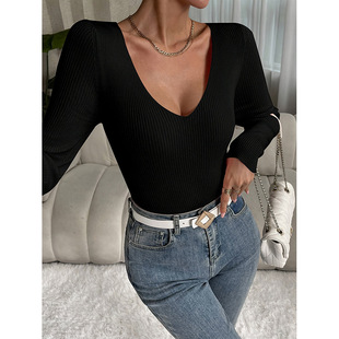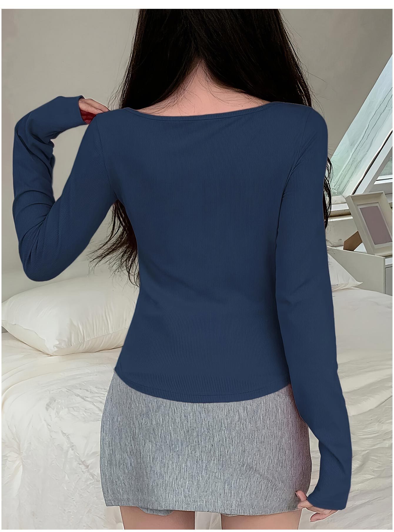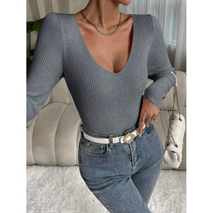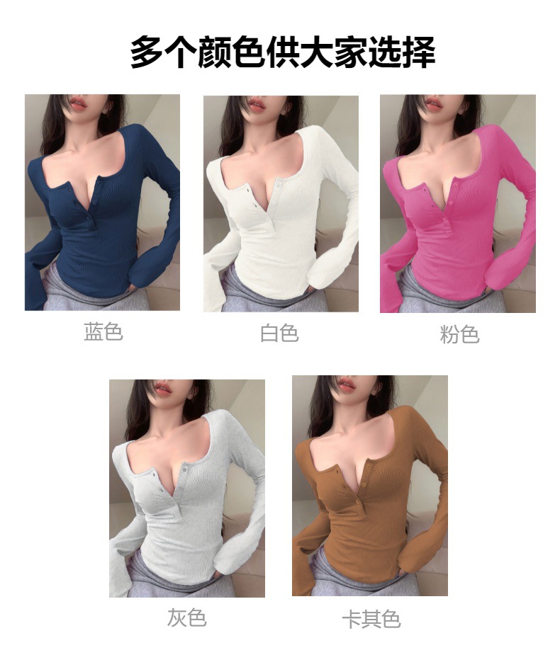 카디건 국경 간 AliExpress 대외 무역 여성 최고 슬림 핏 슬리밍 스파이스 소녀 긴팔 솔리드 컬러 탑 티셔츠스토어 가기