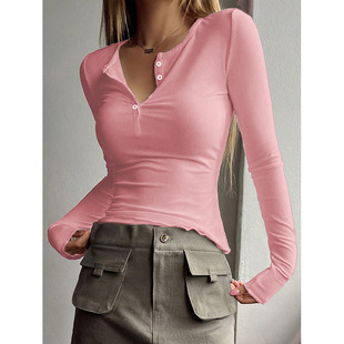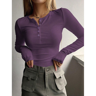 카디건 국경 간 AliExpress 대외 무역 여성 최고 슬림 핏 슬리밍 스파이스 소녀 긴팔 솔리드 컬러 탑 티셔츠