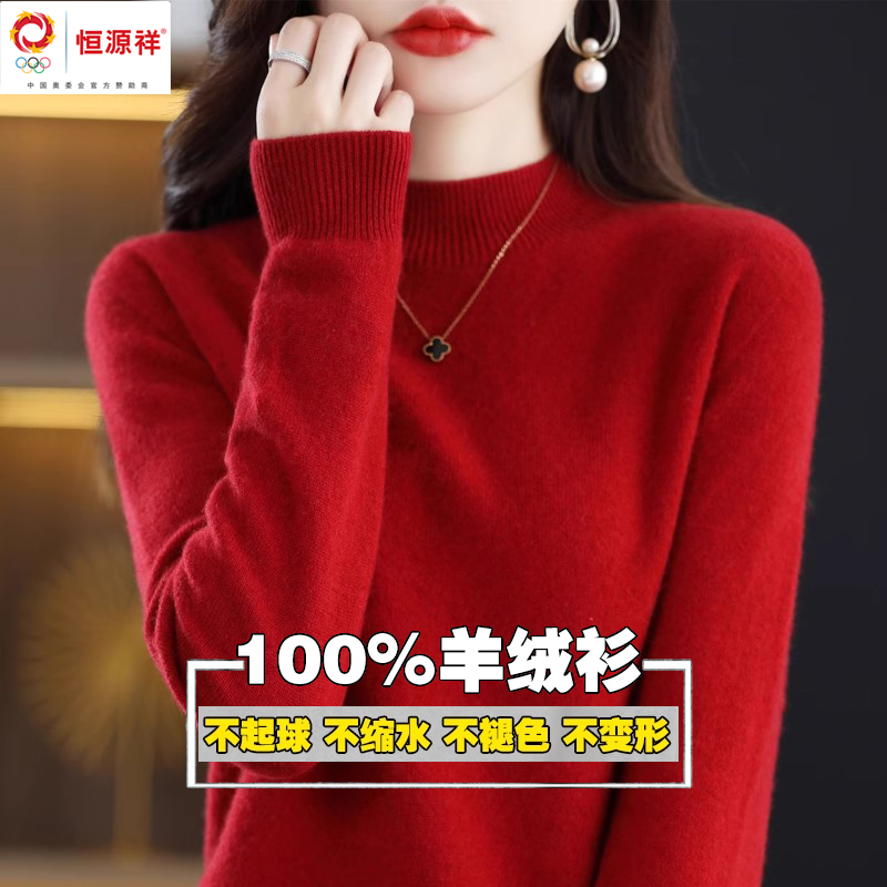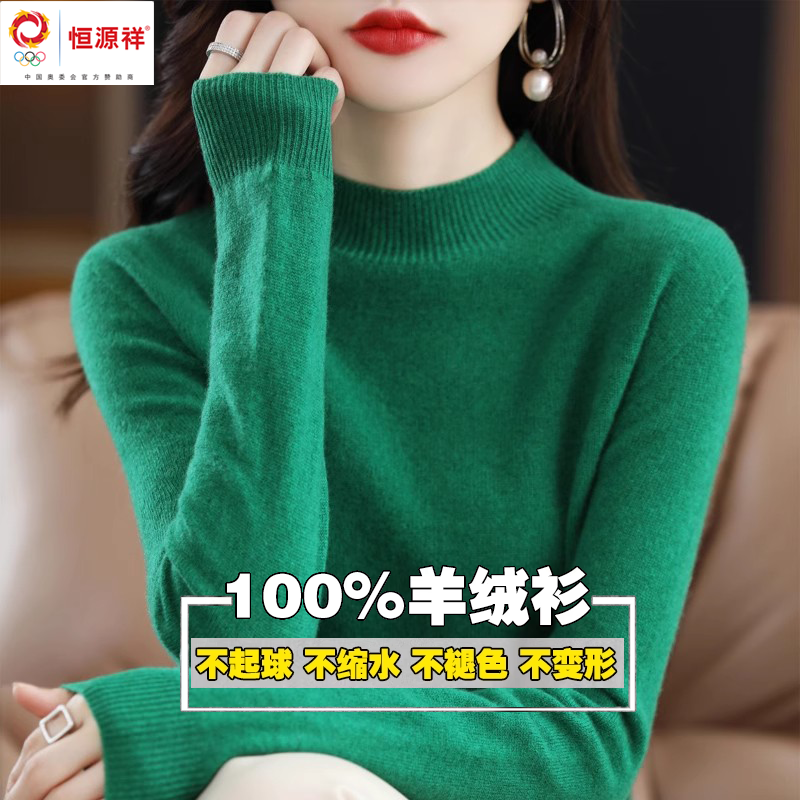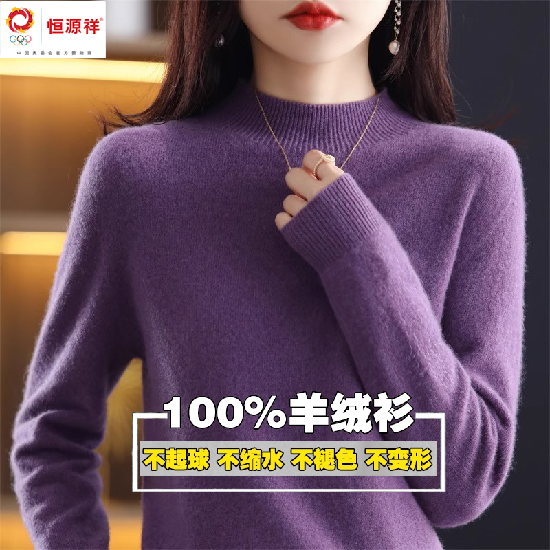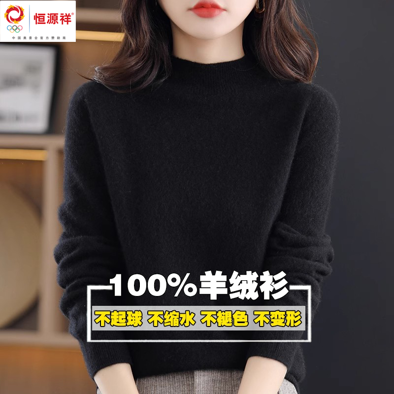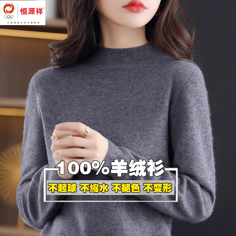Hengyuanxiang 그룹 Caiyang 하이 엔드 캐시미어 스웨터 여성의 가을 및 겨울 크루 넥 스웨터 느슨한 스웨터 내베이스 셔츠