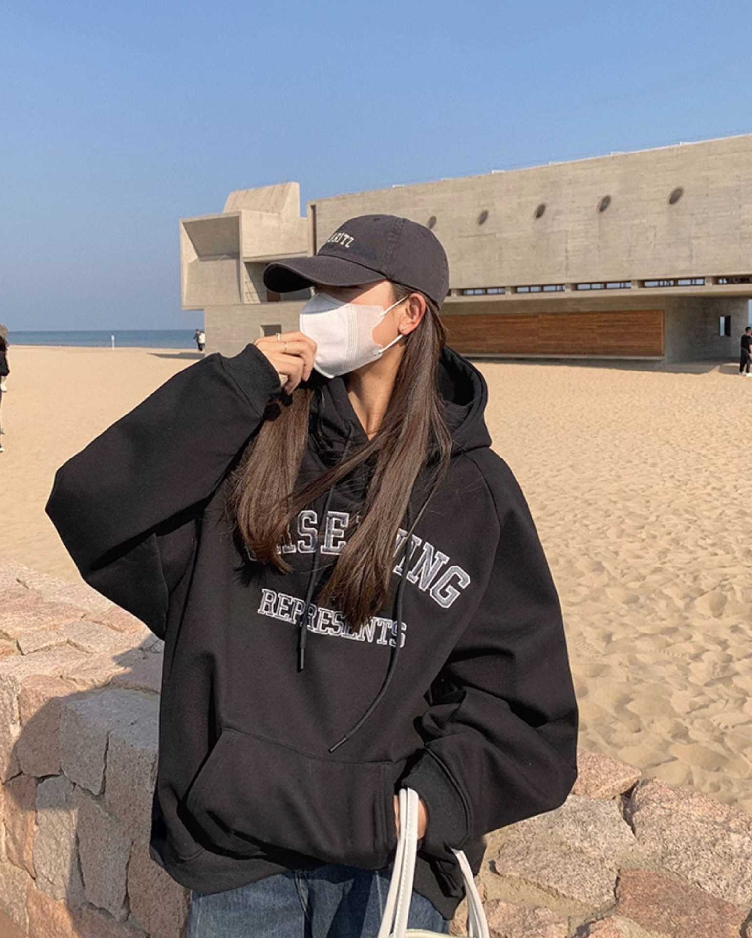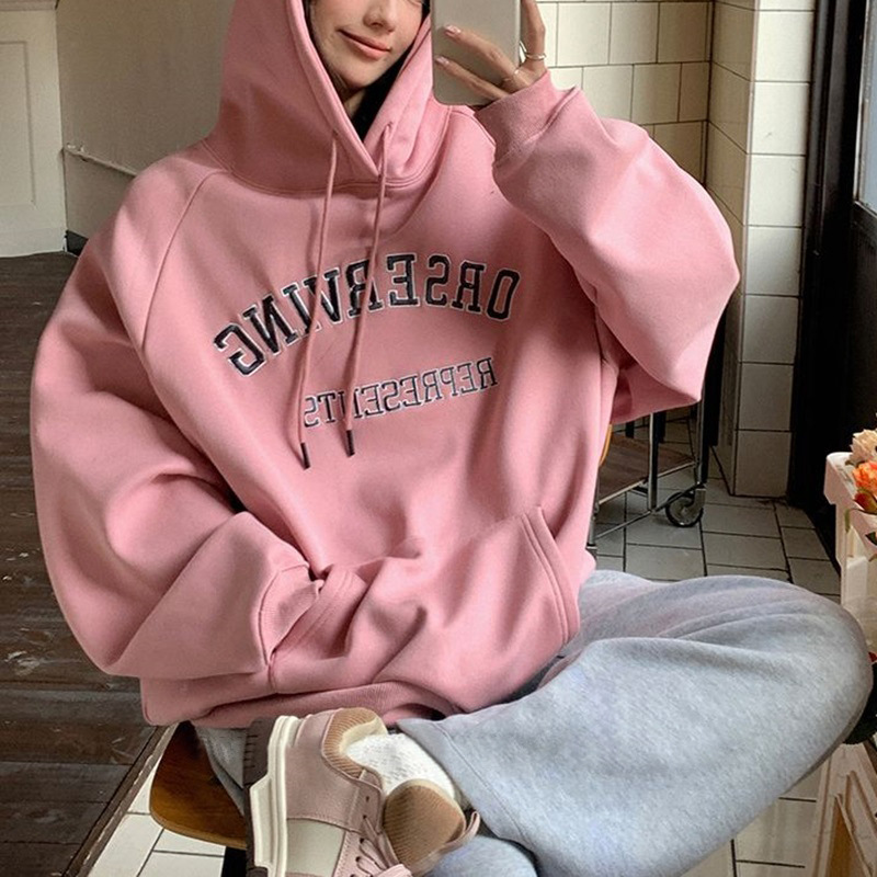 여학생 커플을위한 벨벳 두꺼운 후드 티셔츠 bf 스타일 느슨한 긴팔 바닥 셔츠 여성용 대형 코트 탑스토어 가기