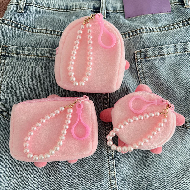 카툰 스타일 사각형 플러시 동전 지갑 휴대용 카드 홀더 신형 원형 이어폰 가방 가방에 걸 수 있는 여성용스토어 가기