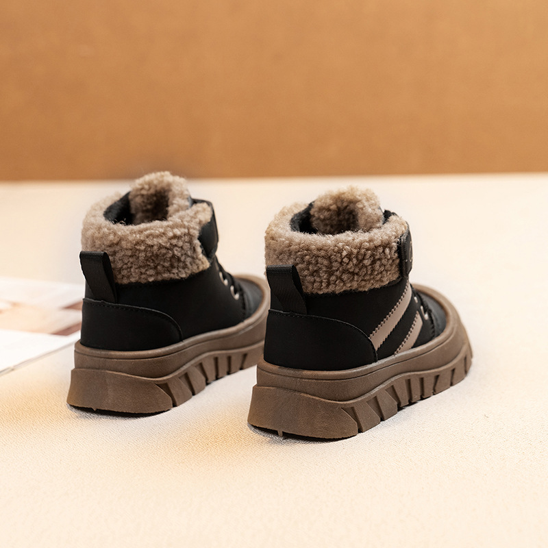 소년 마틴 부츠 겨울 2024 새로운 소녀 가죽 부츠 어린이 기모 따뜻한 부츠 소녀 패션 스노우 부츠