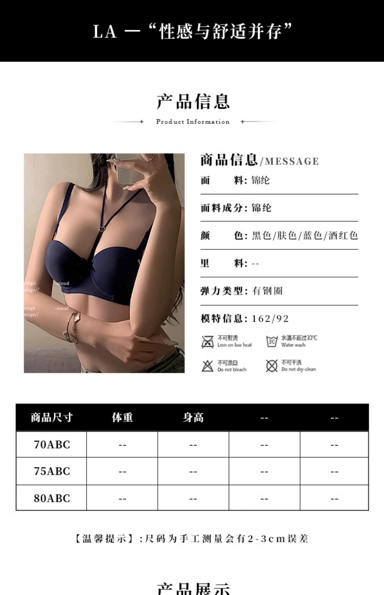 하프 컵 목에 매달린 스파이스 걸 글로스 속옷 여성 모임 쇼 대형 어퍼 투오메이 백 칼라 안티 처짐 브라스토어 가기