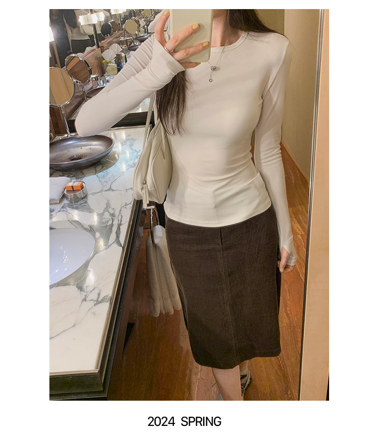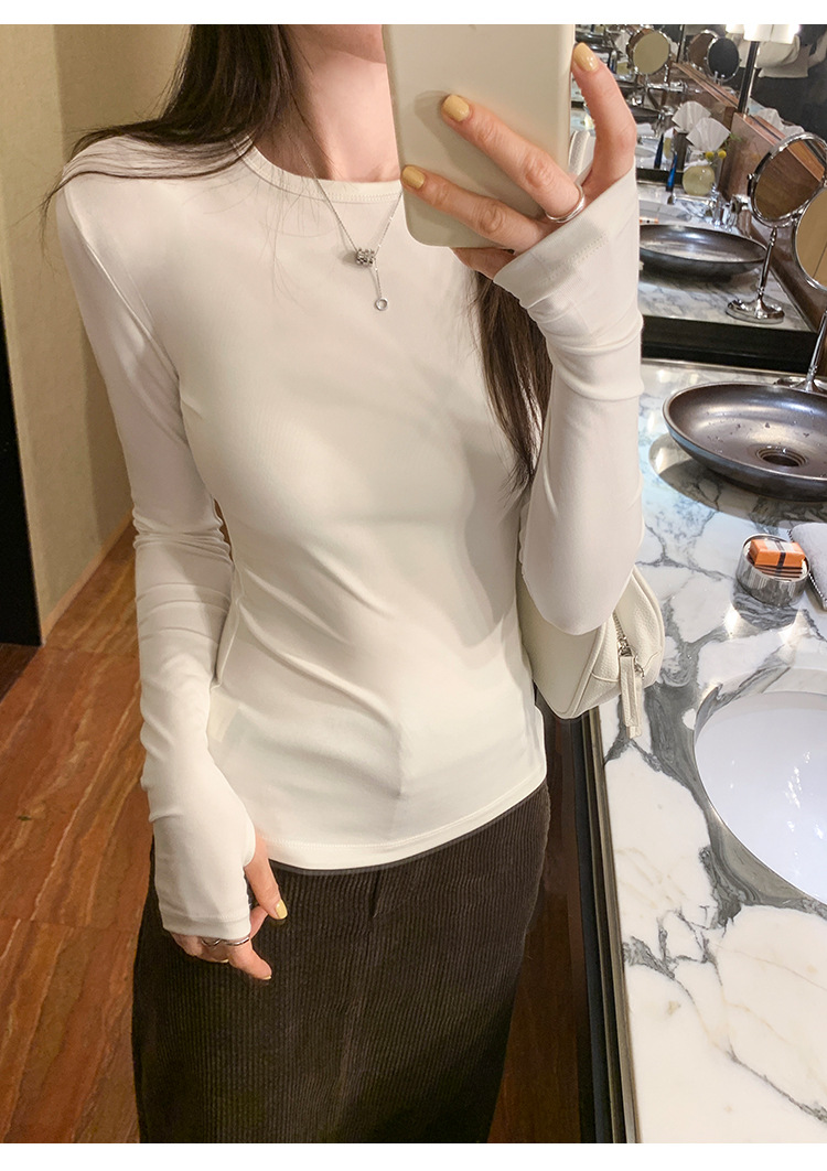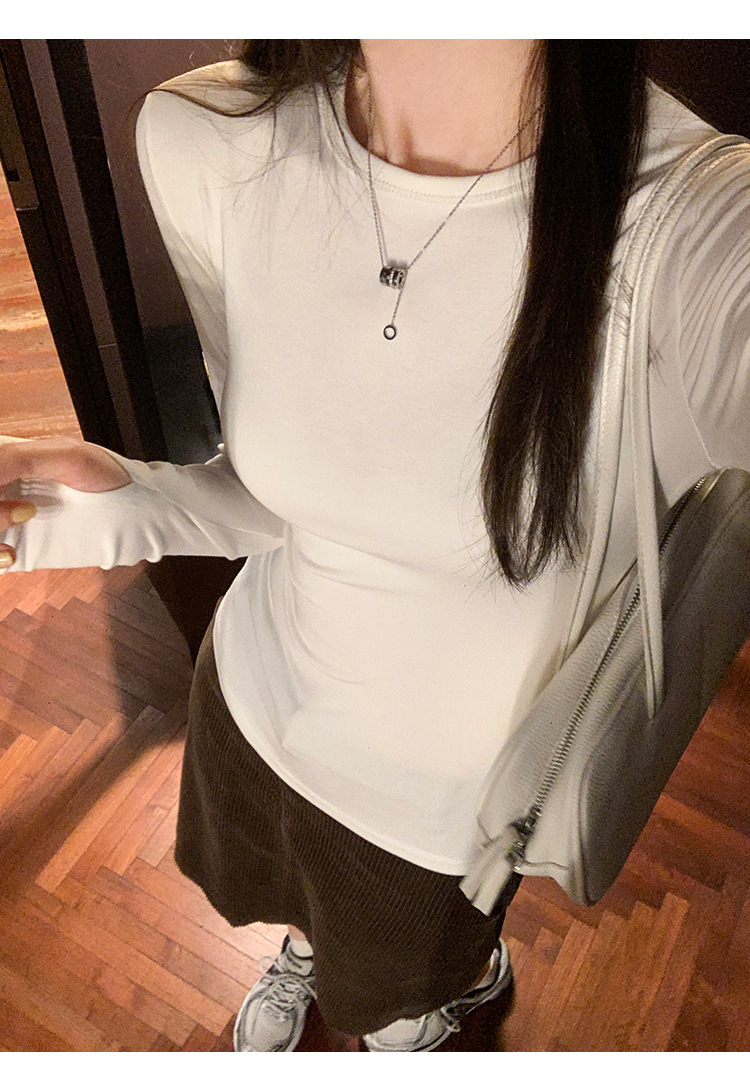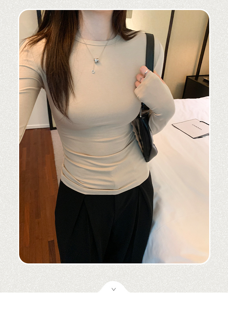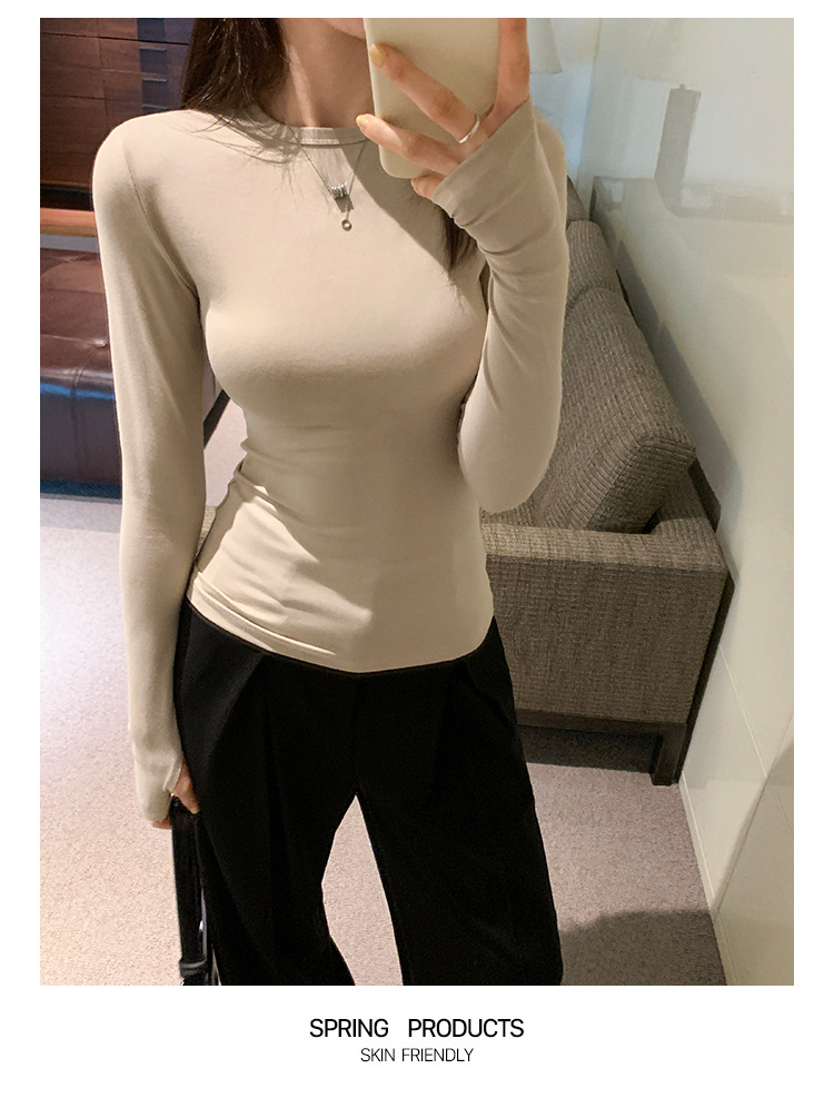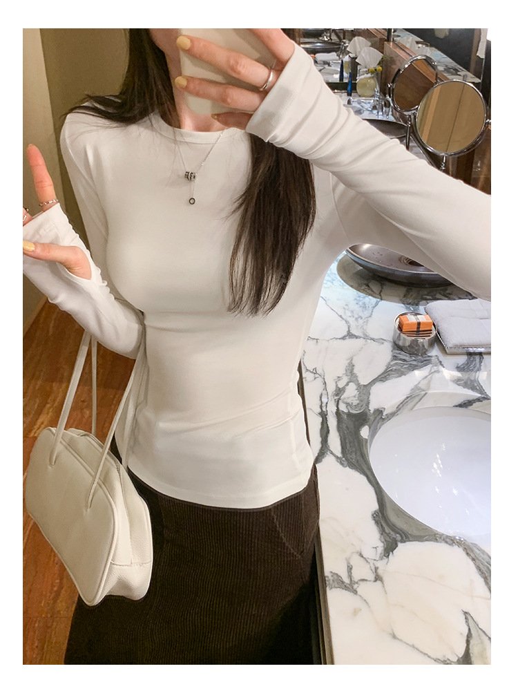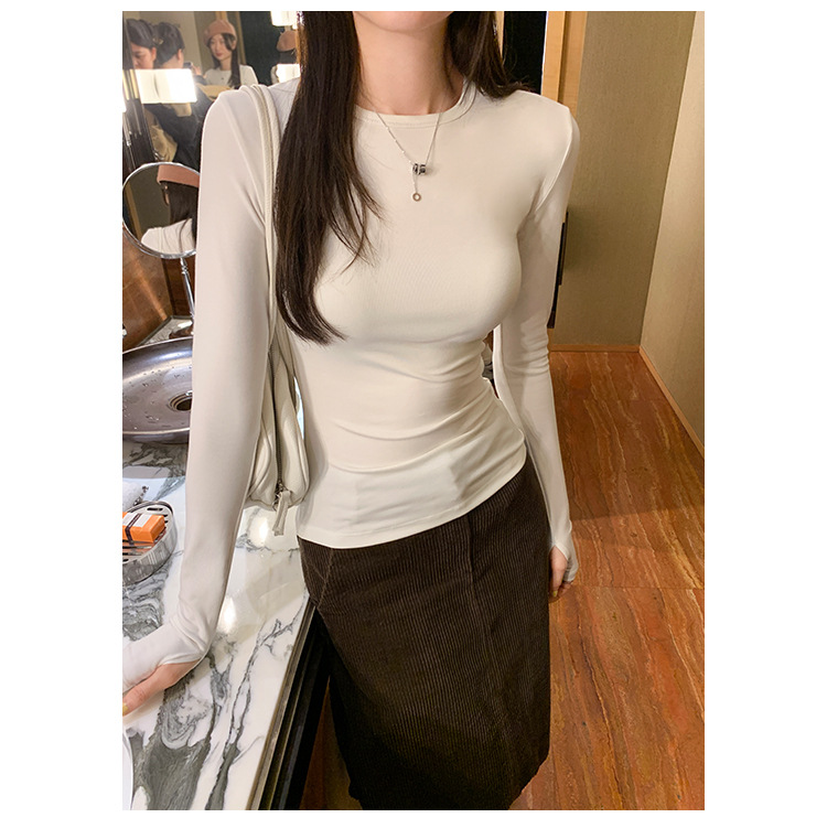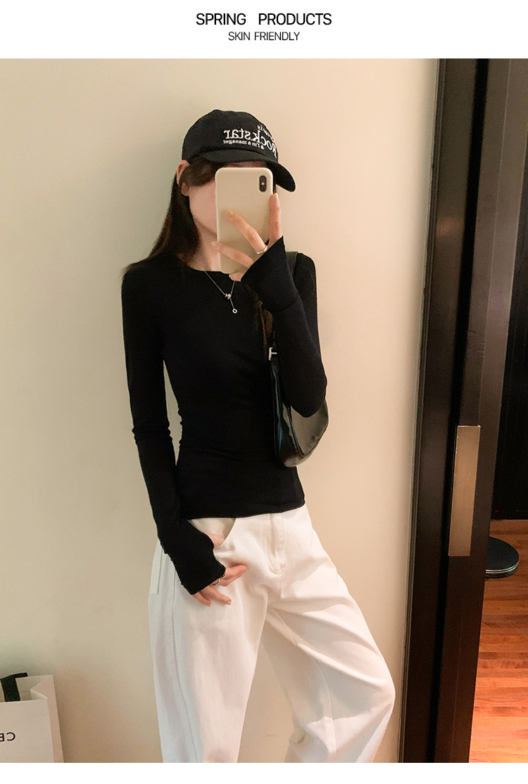 크루 넥 베이직 슬림 핏 슬리밍 숄더 긴팔 티셔츠 여성용 2024 봄, 가을, 겨울 인테리어 서양식 베이스 셔츠 탑스토어 가기