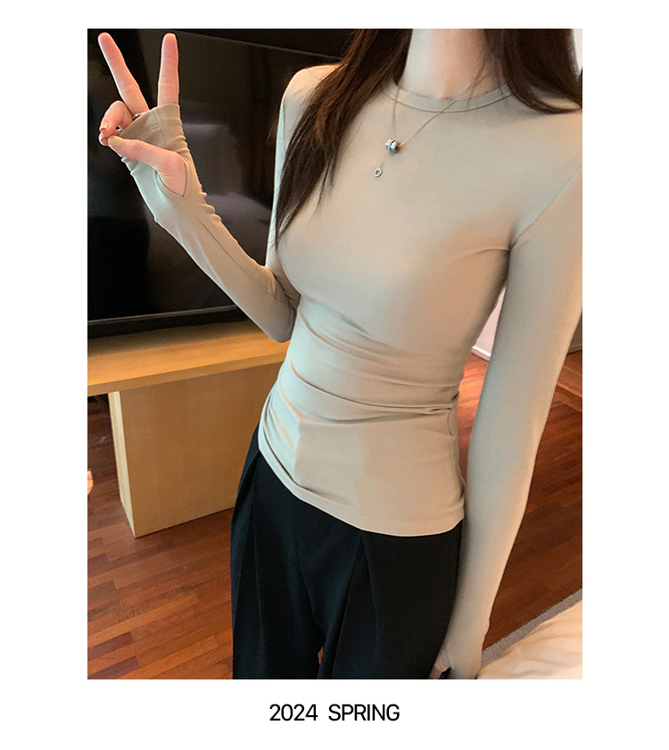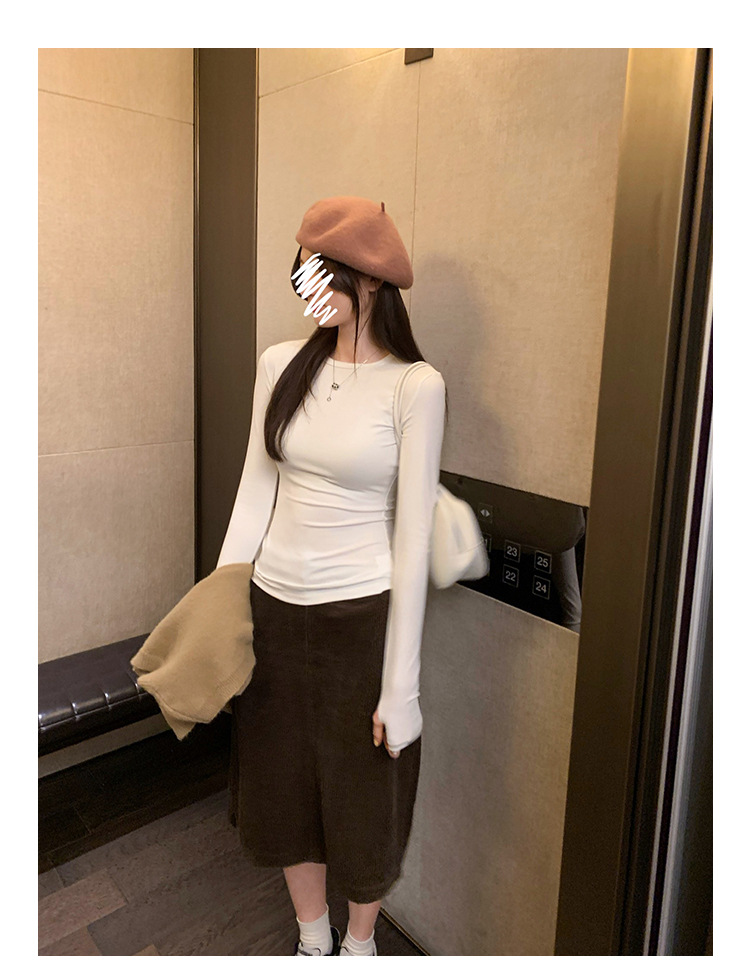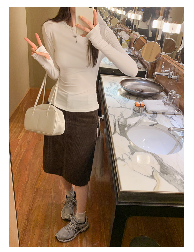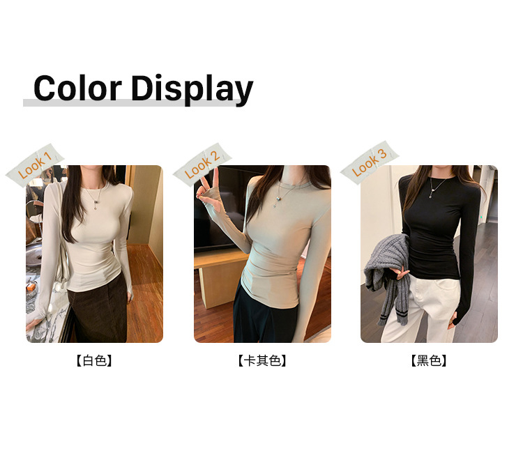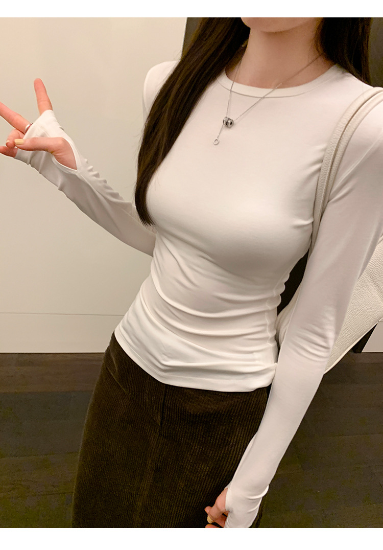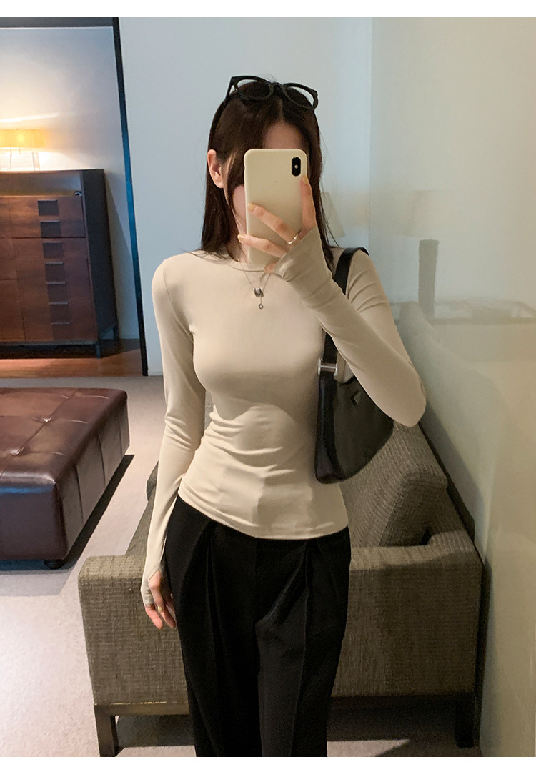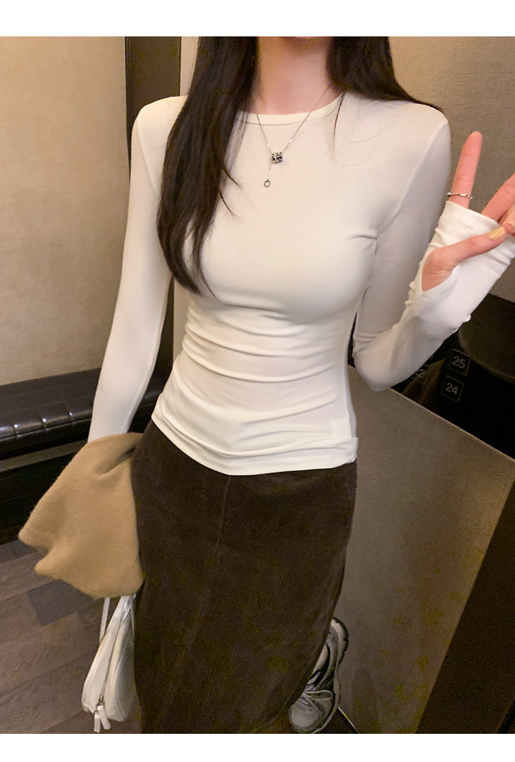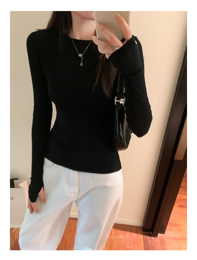 크루 넥 베이직 슬림 핏 슬리밍 숄더 긴팔 티셔츠 여성용 2024 봄, 가을, 겨울 인테리어 서양식 베이스 셔츠 탑스토어 가기