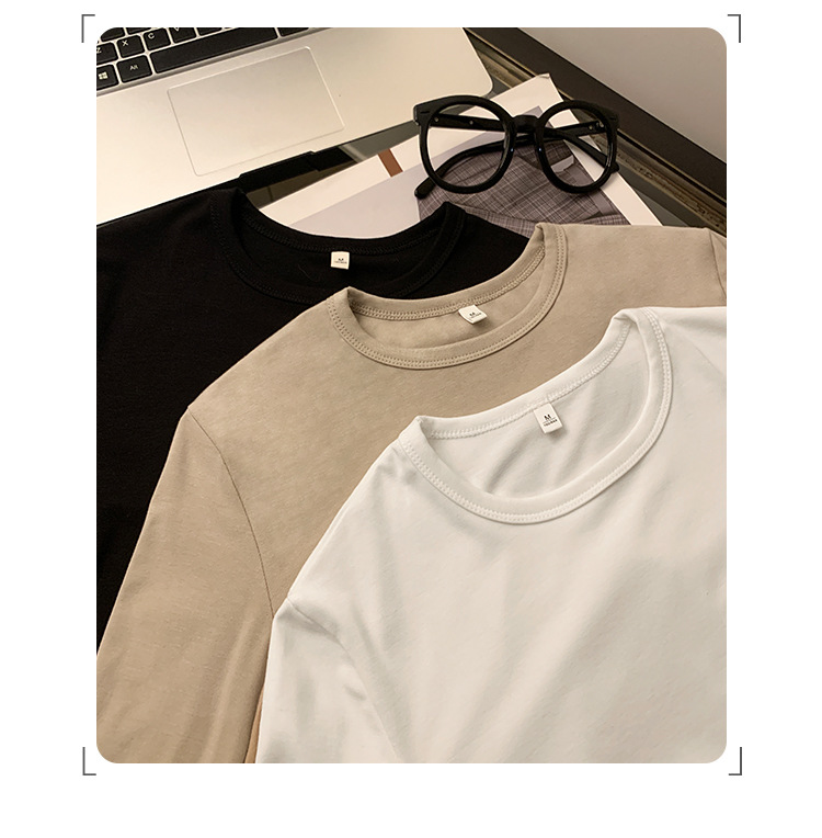 크루 넥 베이직 슬림 핏 슬리밍 숄더 긴팔 티셔츠 여성용 2024 봄, 가을, 겨울 인테리어 서양식 베이스 셔츠 탑
