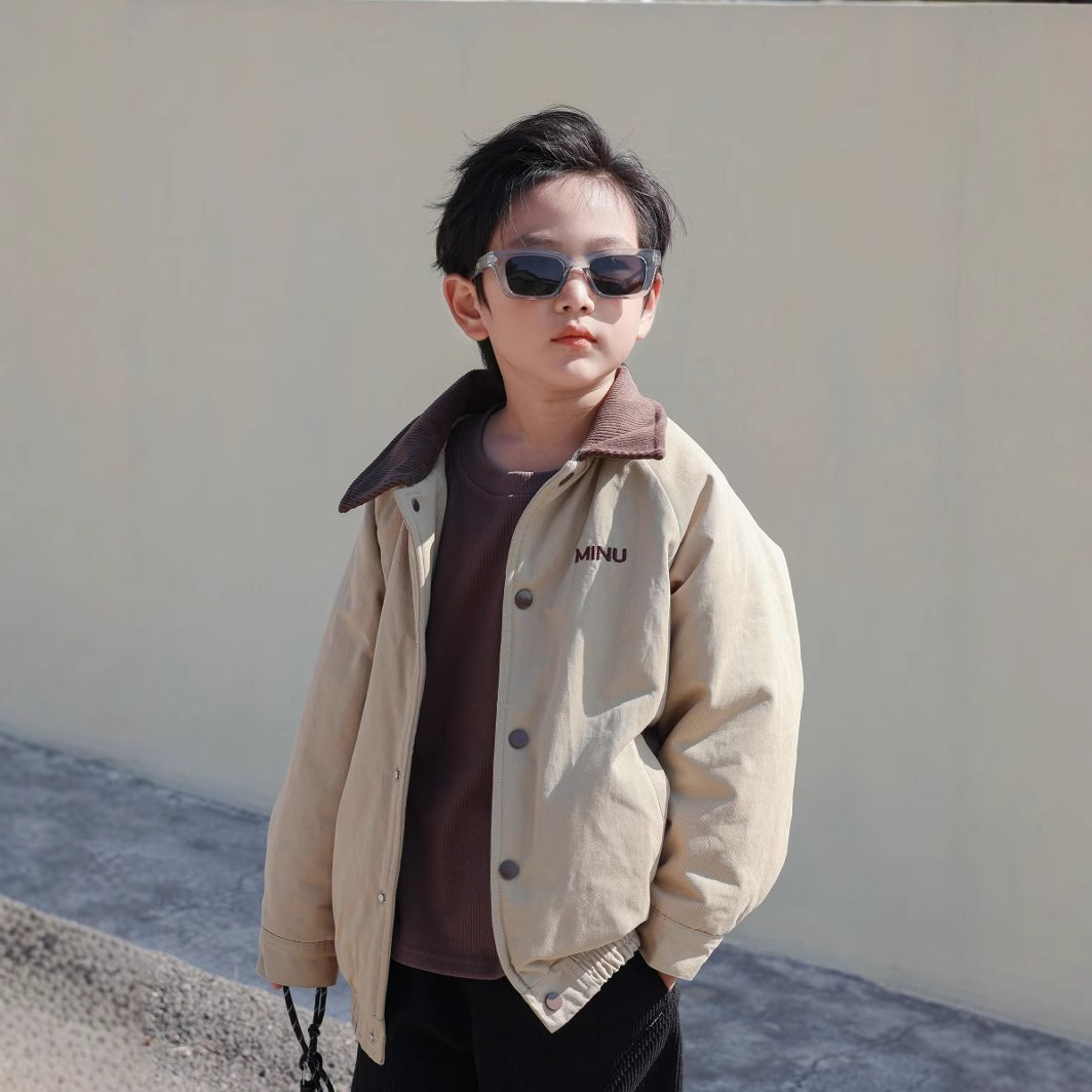 어린이 코트 소년 2024 가을 겨울 새 재킷 아기 자수 편지 옷깃 상단 기모 두꺼운 겉옷스토어 가기