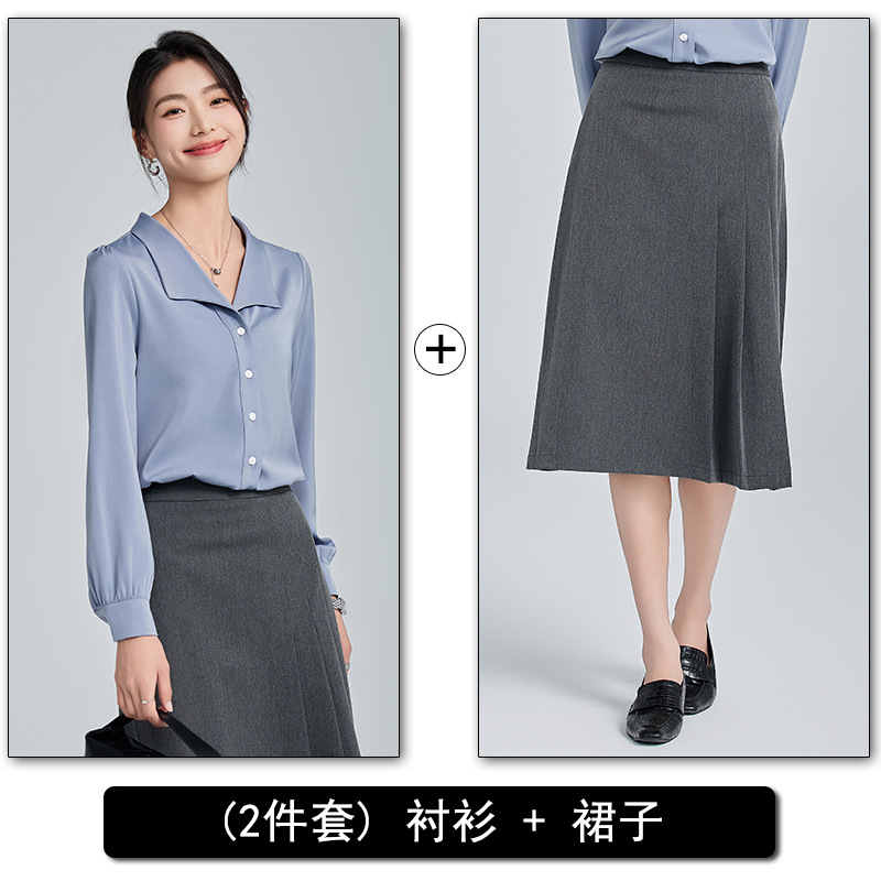 고급 회색 세트 여성의 봄과 가을 신사업 원피스 인터뷰 원피스 작은 무릎 스커트 투피스 세트스토어 가기