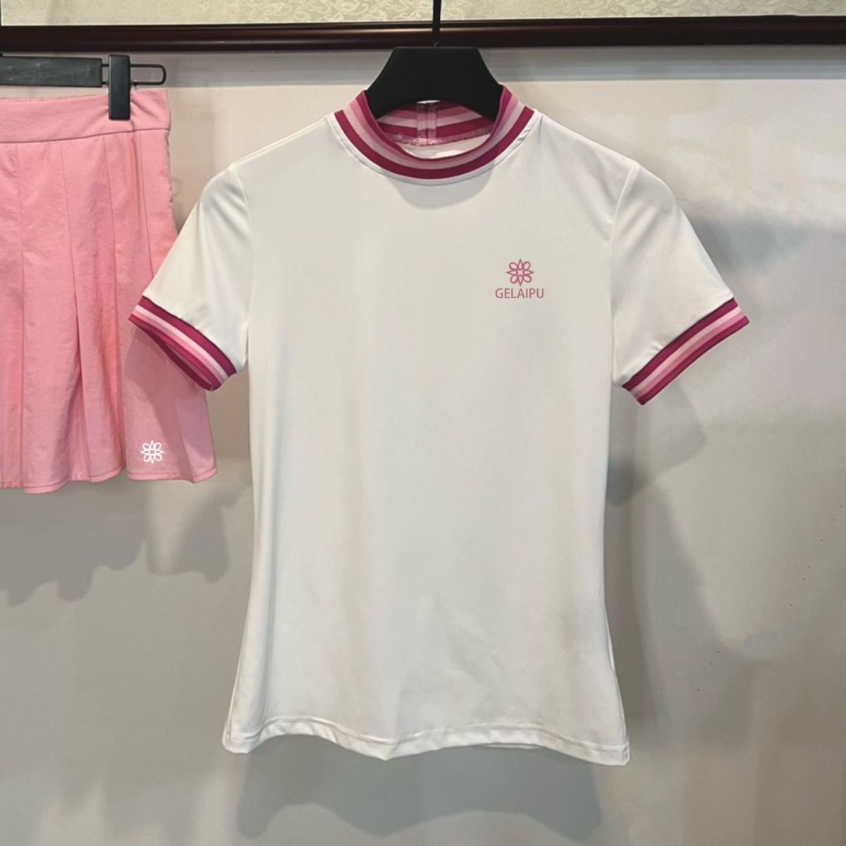 24 새로운 여름 골프 여자 최고의 새로운 캐주얼 빠른 건조 반팔 티셔츠 여성 패션 라운드 넥 슬림 핏