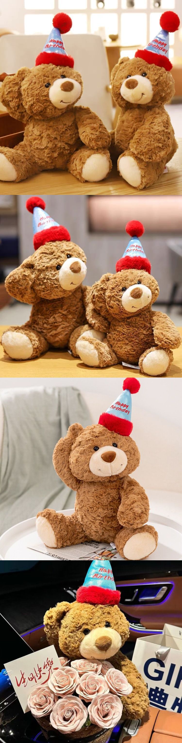 도매 생일 모자 작은 곰 인형 테디 베어 발렌타인 데이 포옹 버킷 곰 소녀 크리스마스 생일 선물스토어 가기