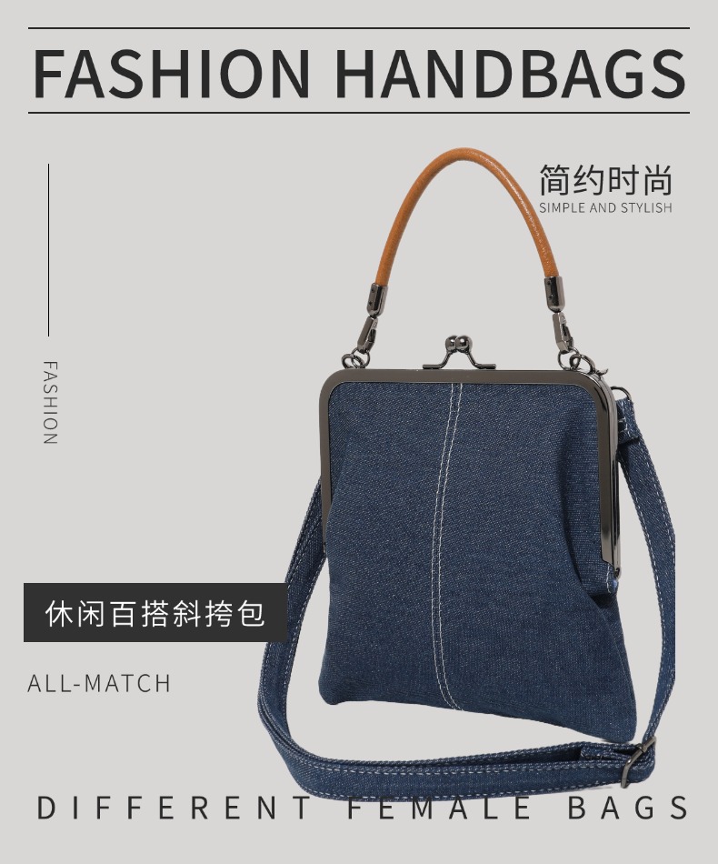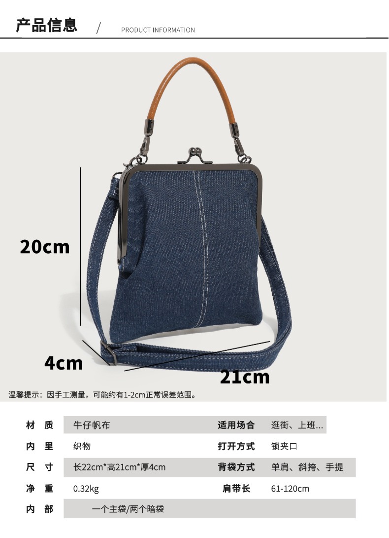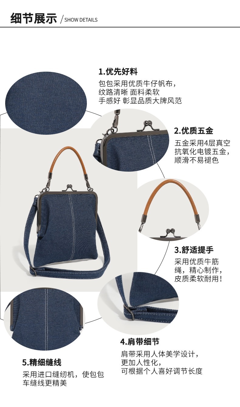 2024 새로운 틈새 데님 가방 휴대 전화 가방 크로스 바디 가방 예술적 핸드백 올 매치 수제 Tuote 여성