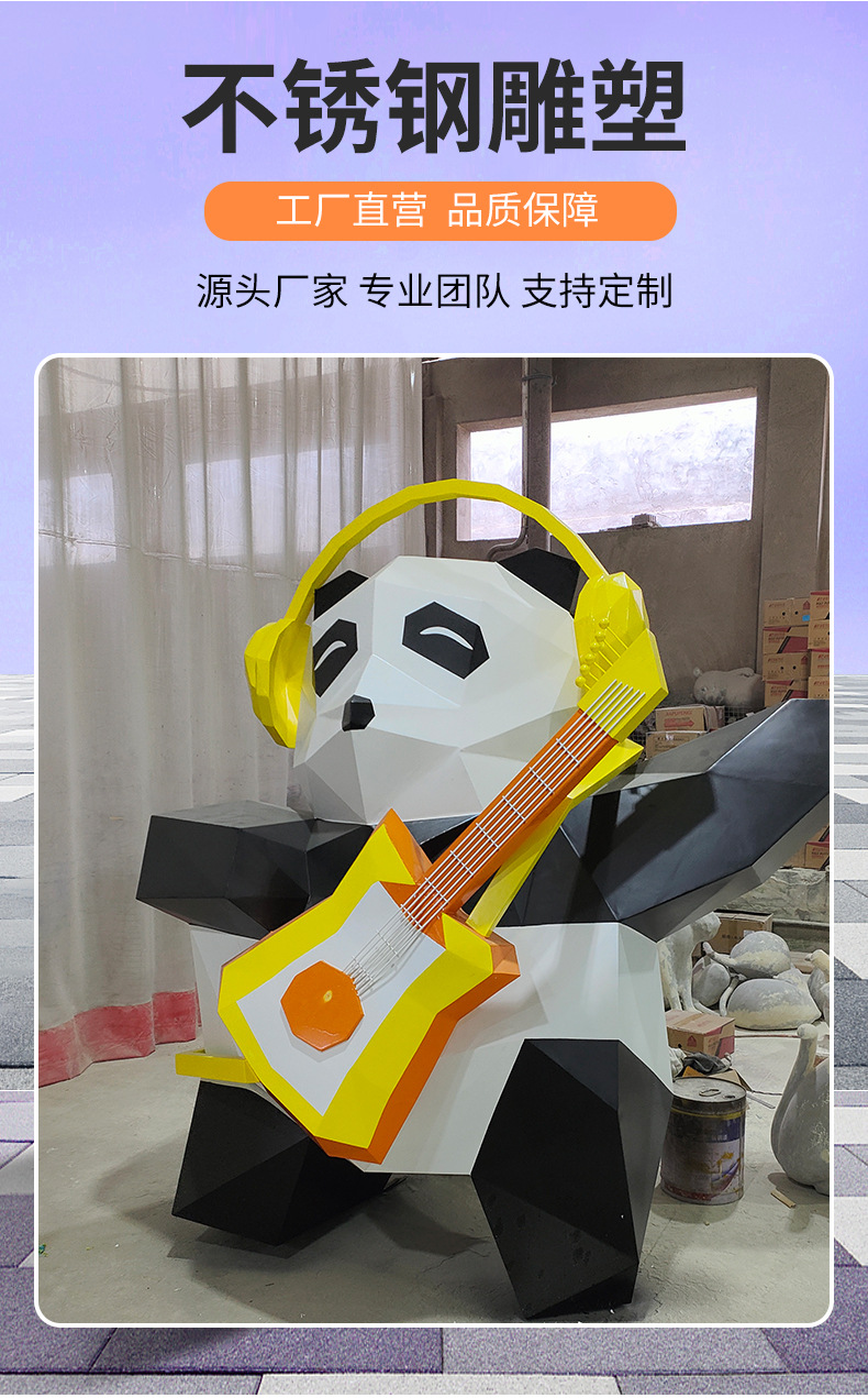 대형 팬더 스테인레스 스틸 조각 맞춤형 인터넷 연예인 애니메이션 캐릭터 인형 모델 쇼핑몰 아름다운 장식품 조각스토어 가기
