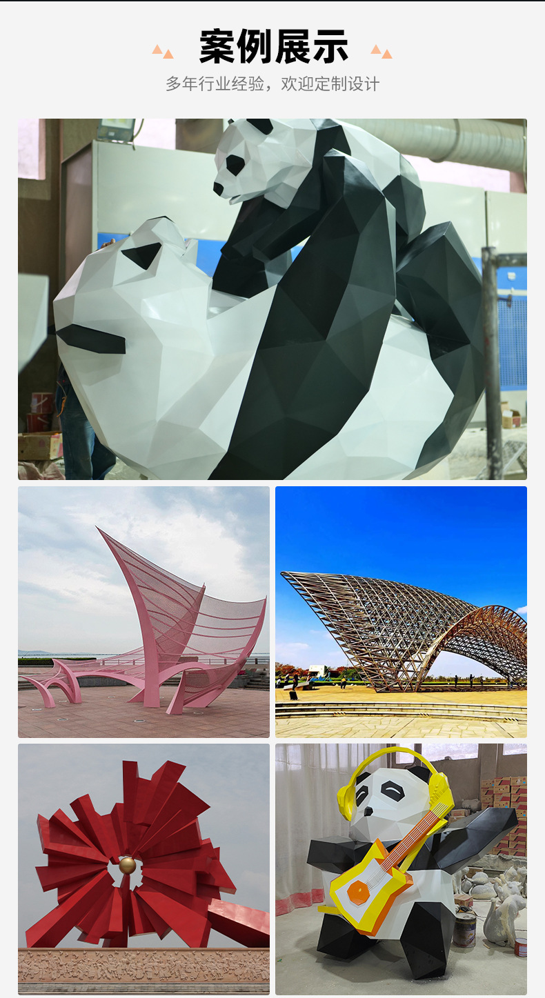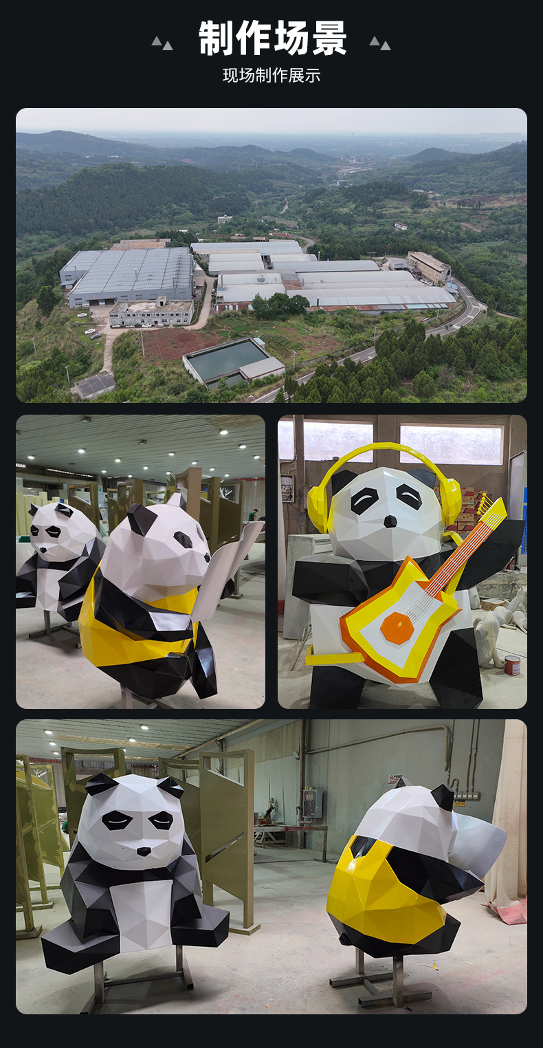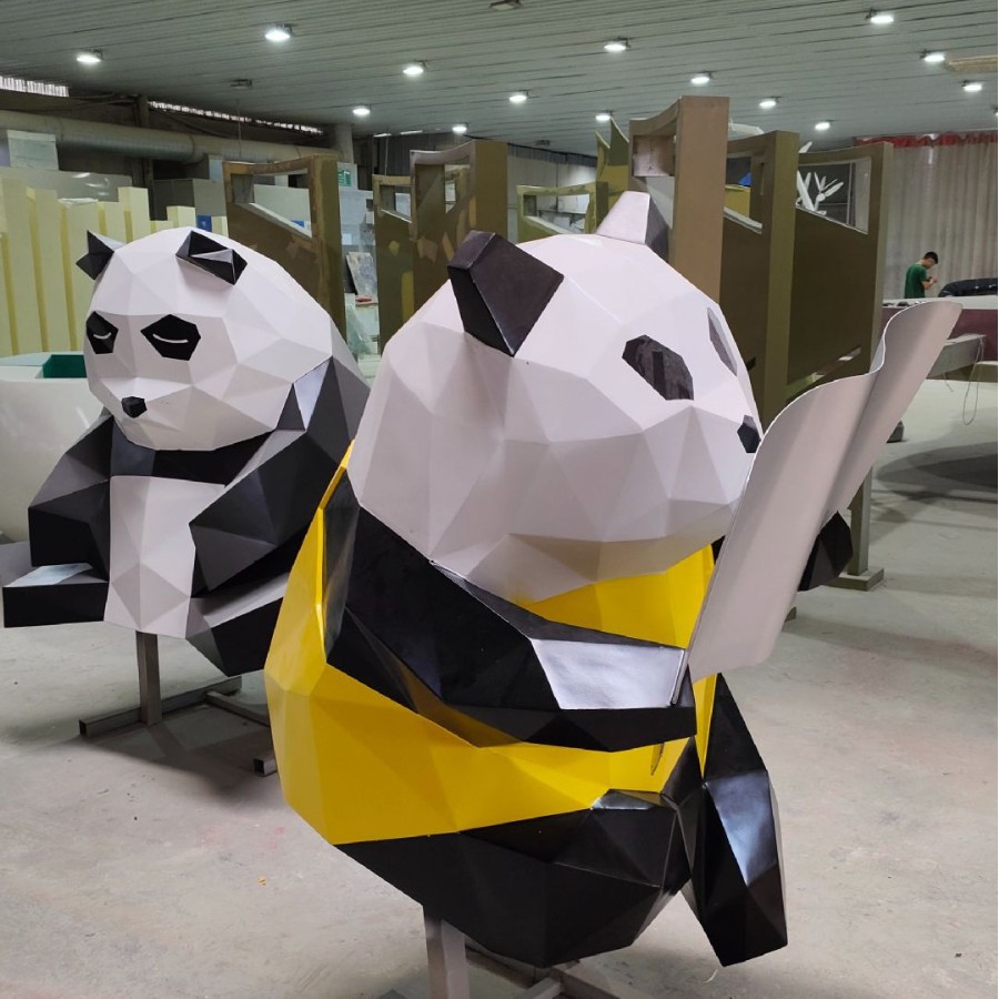 대형 팬더 스테인레스 스틸 조각 맞춤형 인터넷 연예인 애니메이션 캐릭터 인형 모델 쇼핑몰 아름다운 장식품 조각