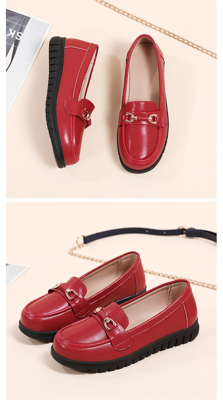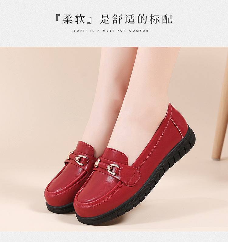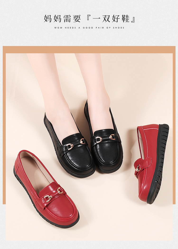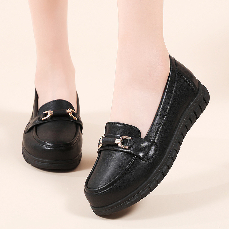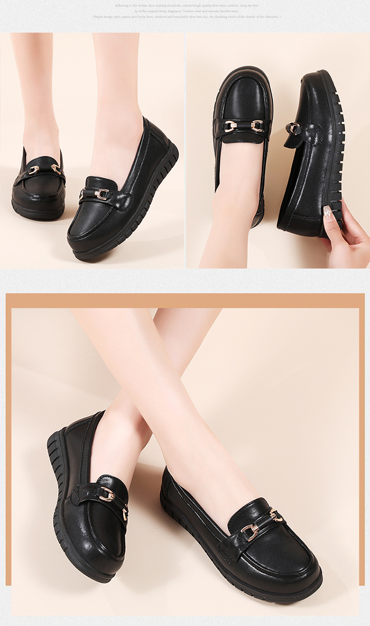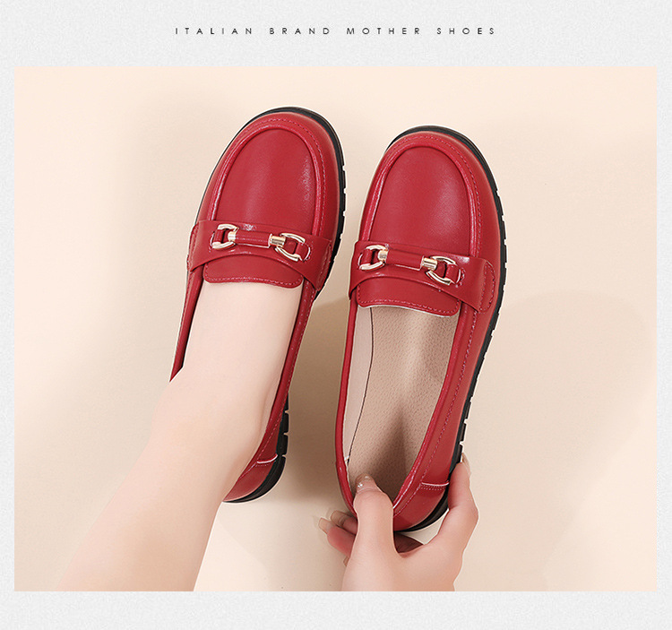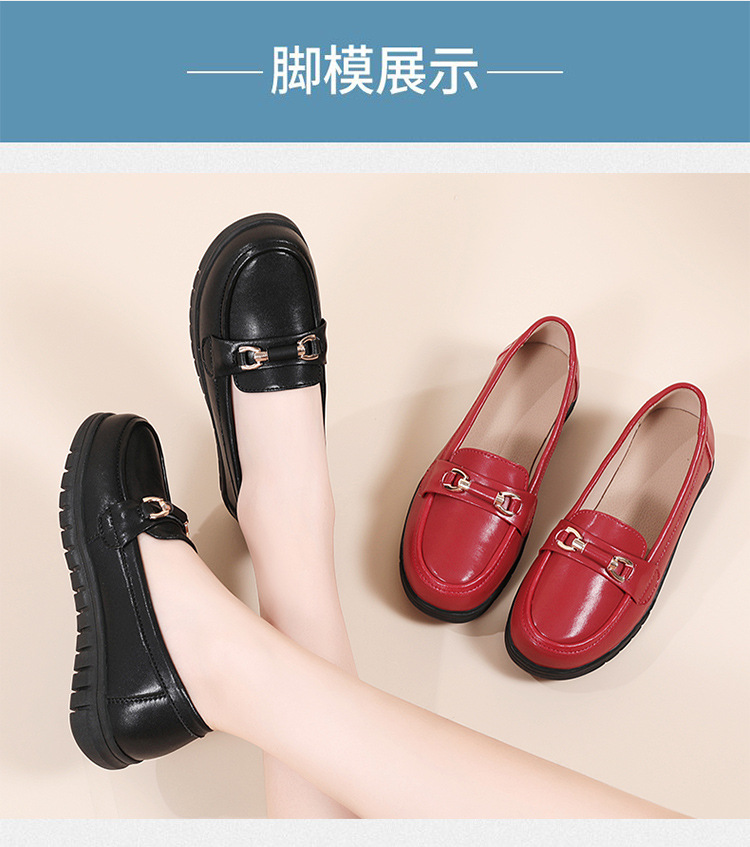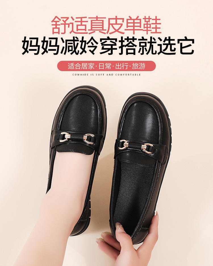 국경 2025 봄 새로운 정품 가죽 어머니 신발 영국 캐주얼 작은 가죽 신발 금속 버클 세트 발 편안한 싱글 레이어 신발스토어 가기