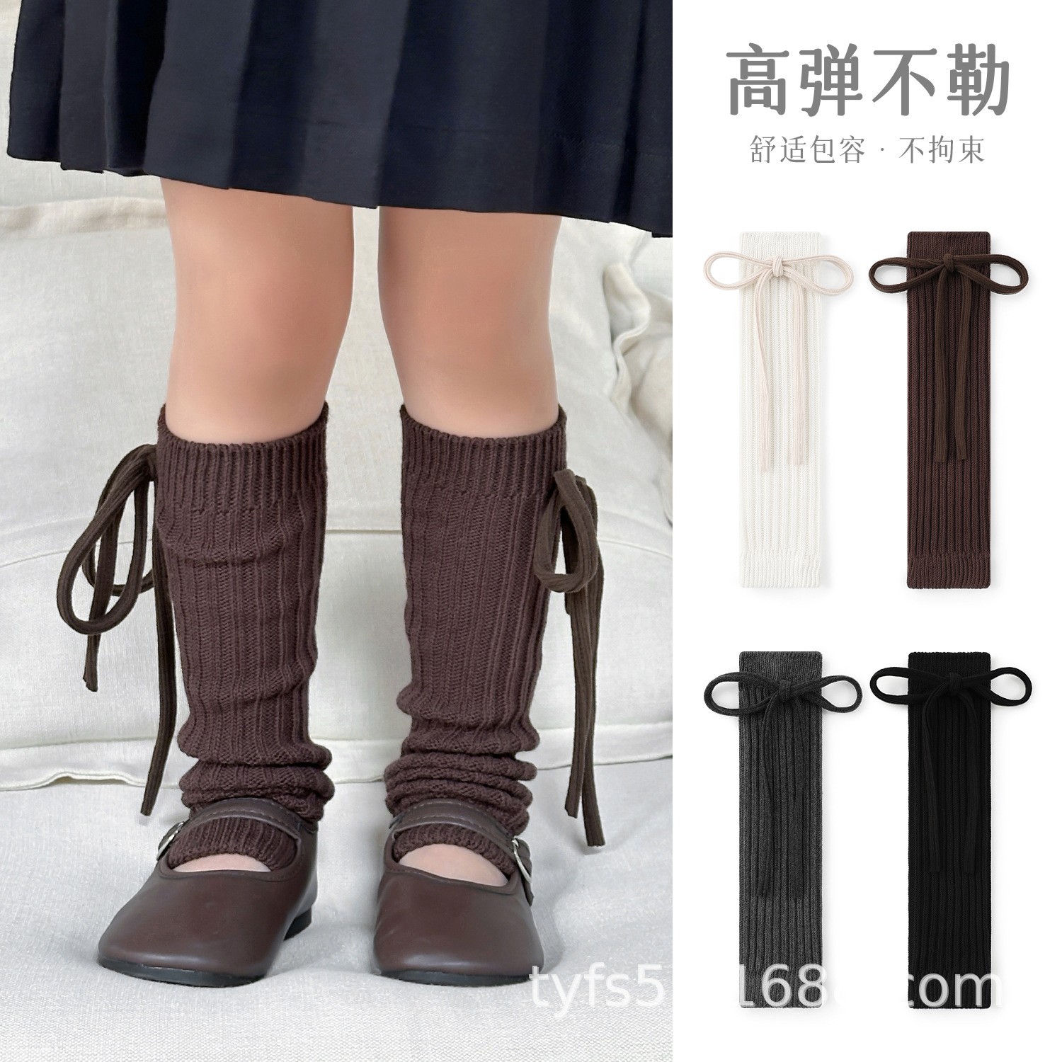 名称:针织儿童袜套秋冬女童韩系绑带小腿套纯色双针保暖脚套儿童堆堆袜