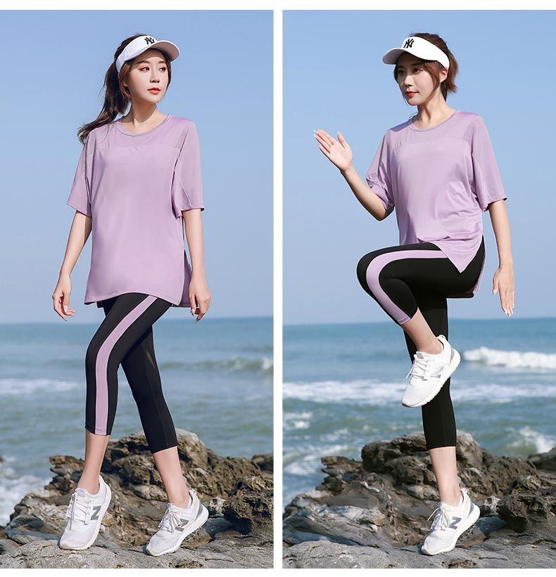 새로운 초대형 요가 옷 여성 여름 느슨한 체육관 스포츠 세트 지방 MM200 kg 달리기 빠른 건조스토어 가기