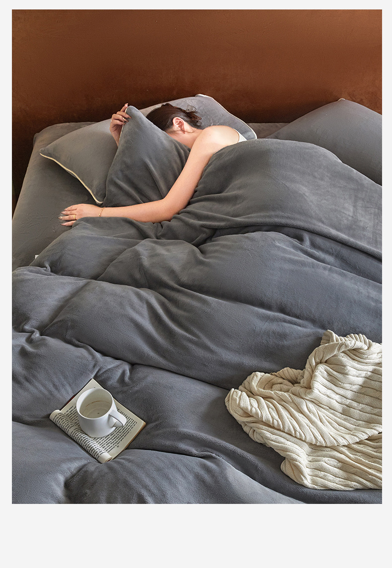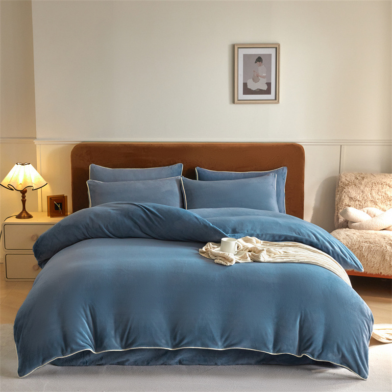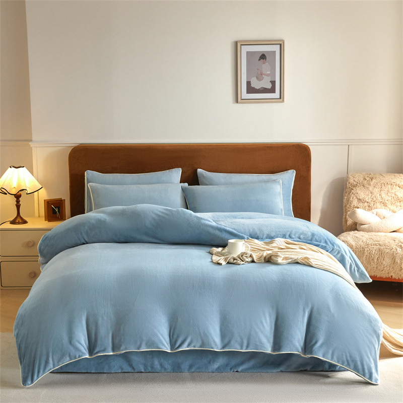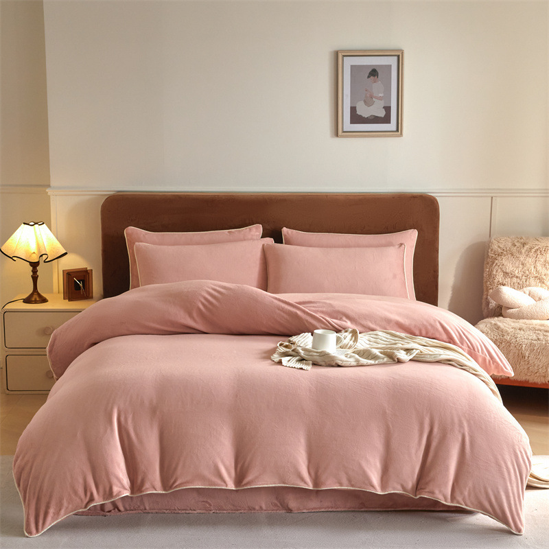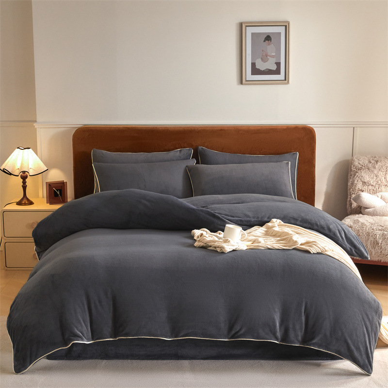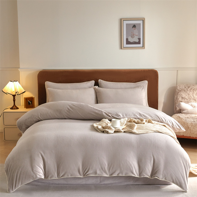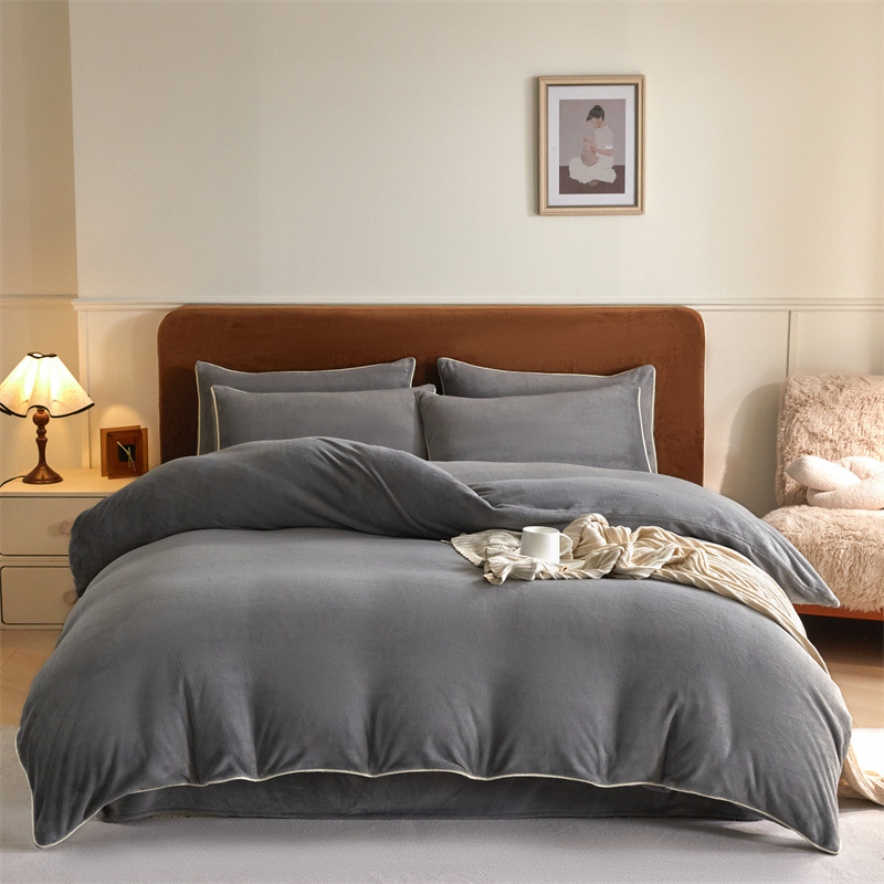 밀크 벨벳 침대 4 피스 코랄 벨벳 겨울 기모 플란넬 두꺼운 양면 벨벳 퀼트 커버 침대 시트 3 피스 세트