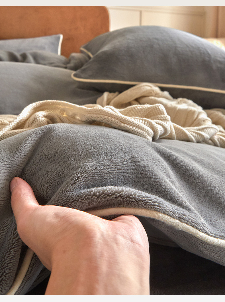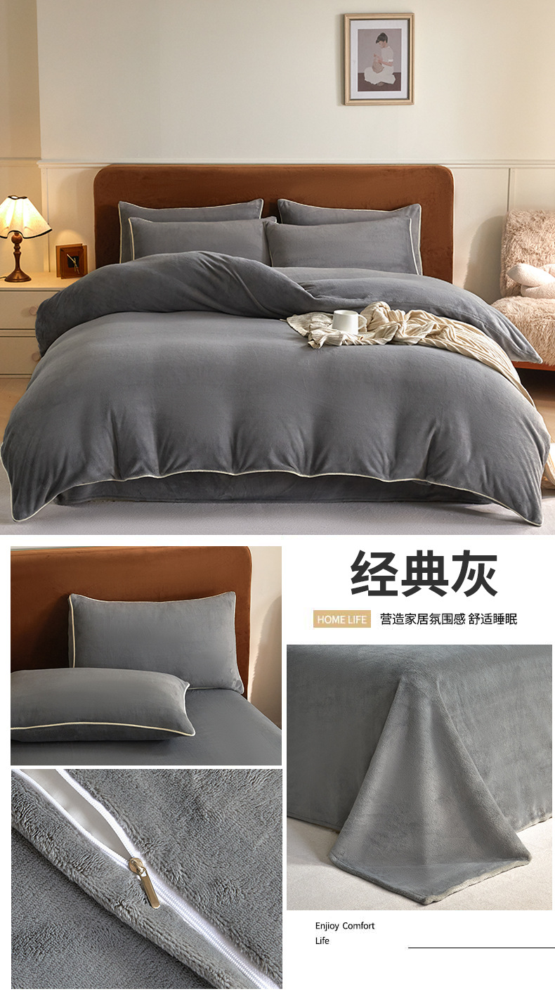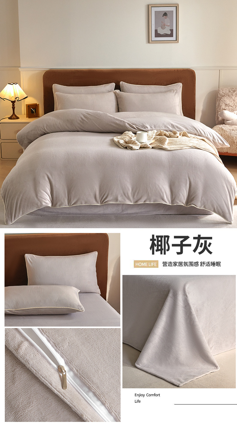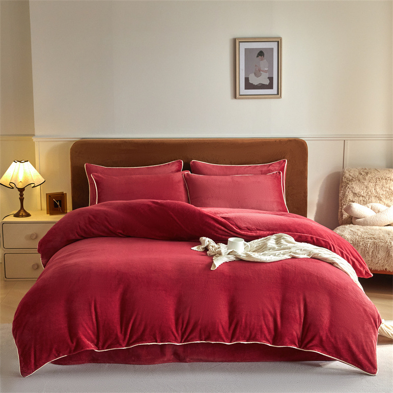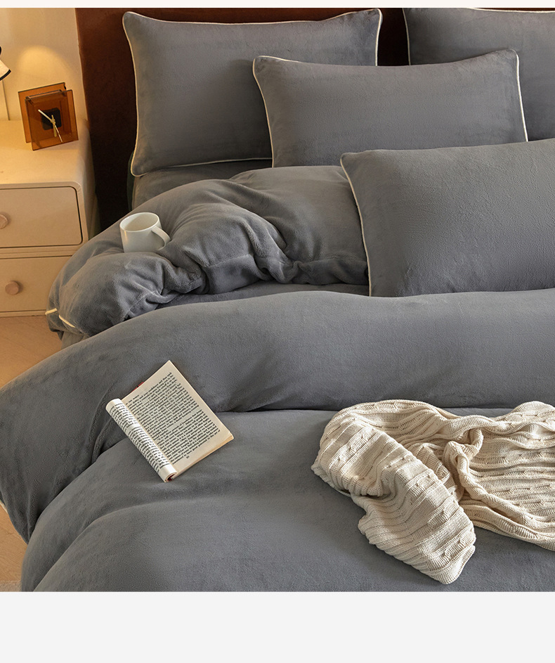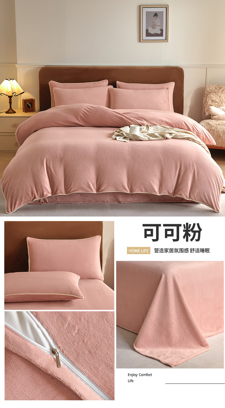 밀크 벨벳 침대 4 피스 코랄 벨벳 겨울 기모 플란넬 두꺼운 양면 벨벳 퀼트 커버 침대 시트 3 피스 세트