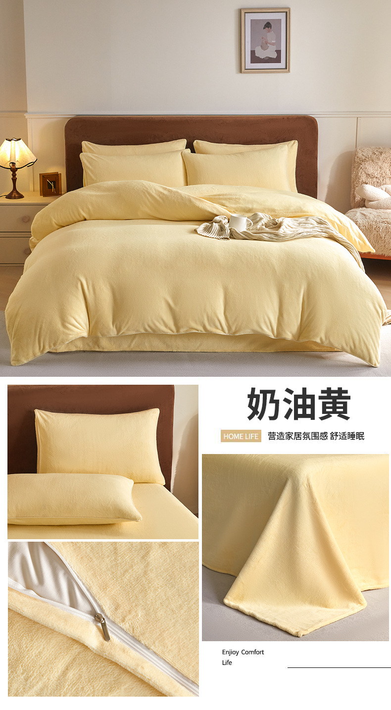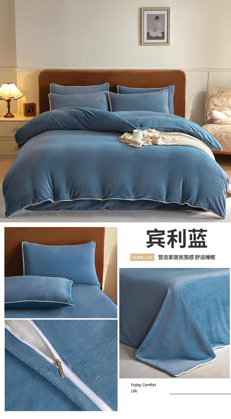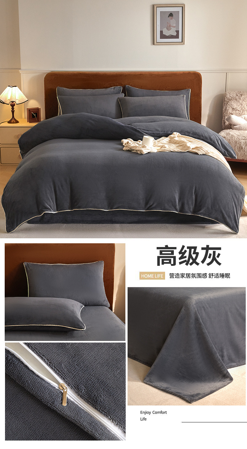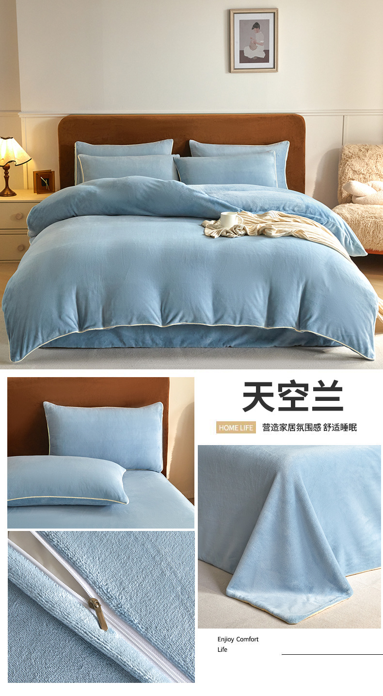 밀크 벨벳 침대 4 피스 코랄 벨벳 겨울 기모 플란넬 두꺼운 양면 벨벳 퀼트 커버 침대 시트 3 피스 세트