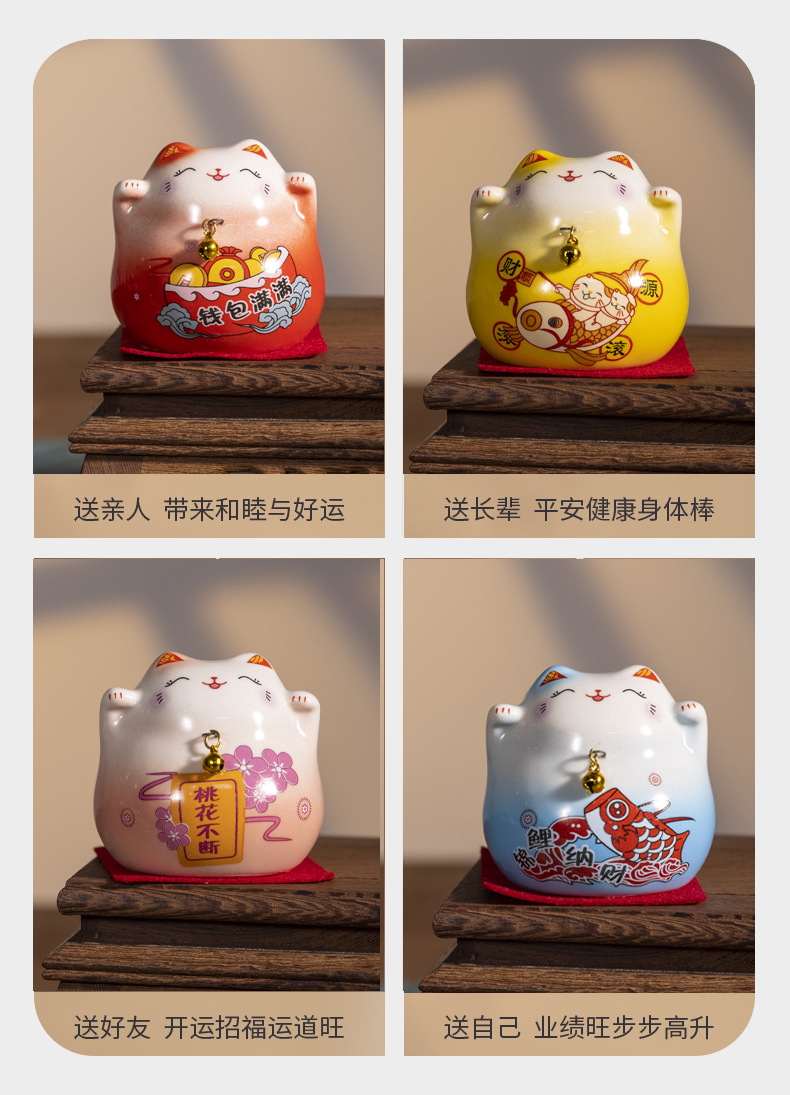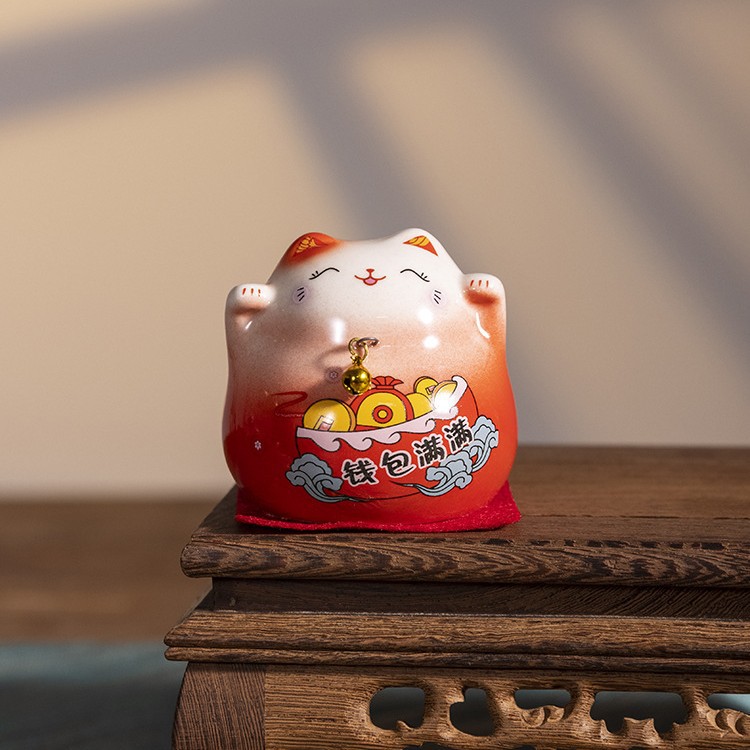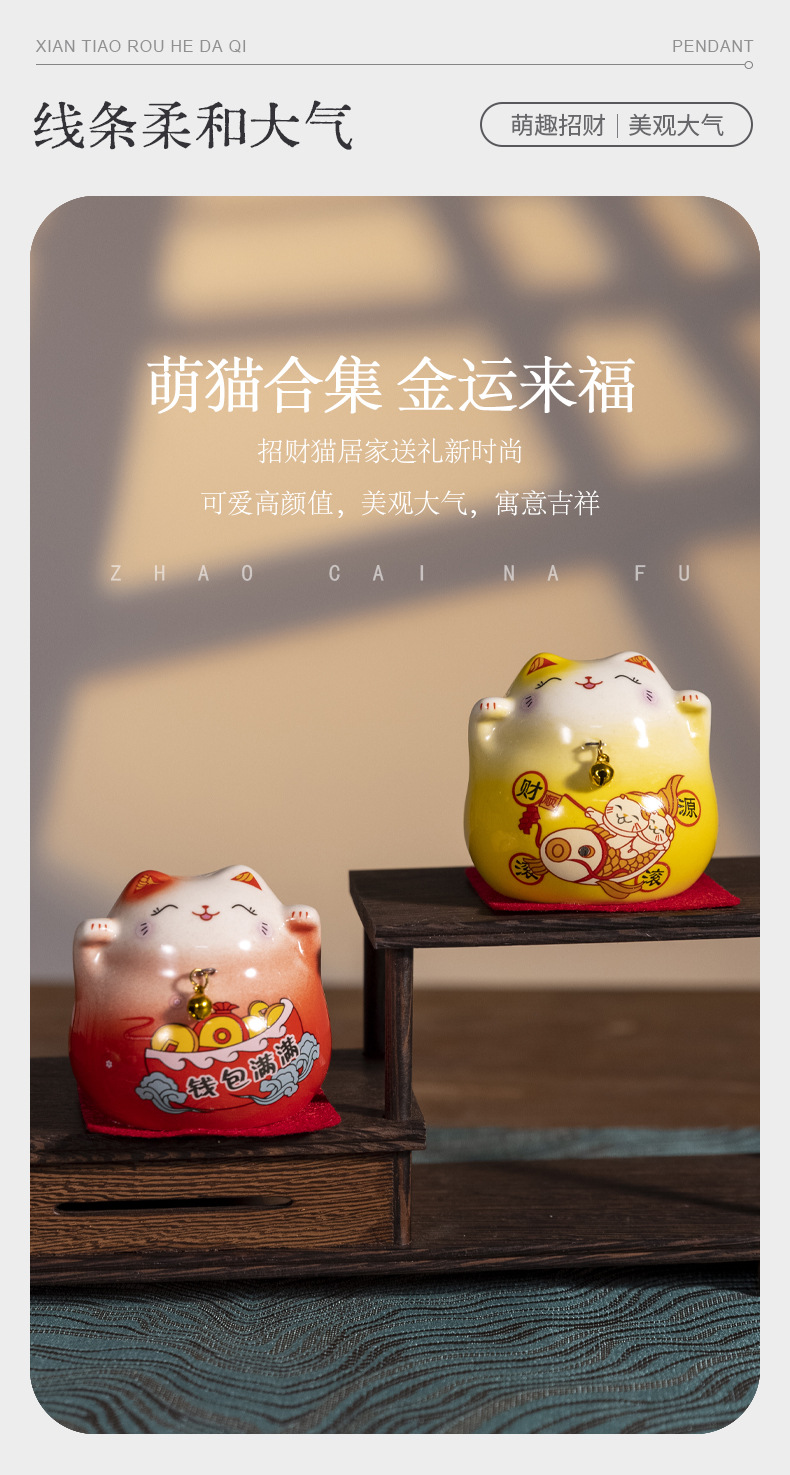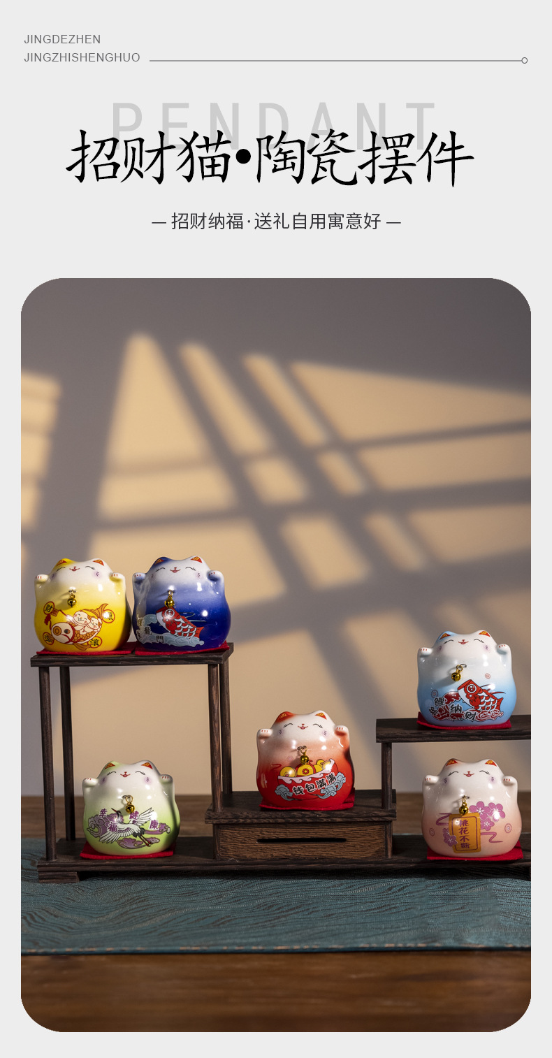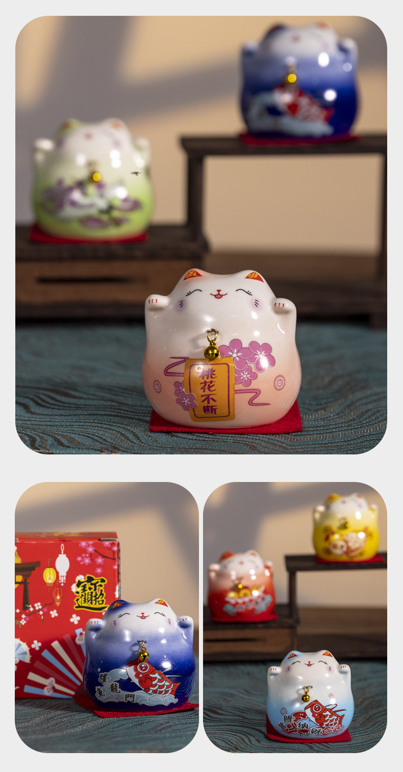 세라믹 럭키 고양이 장식품 중국 창조적 인 고양이 작은 장식품 홈 데스크탑 장식 세라믹 공예 선물