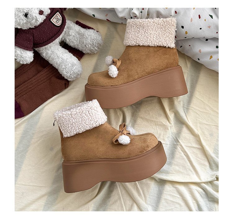 두꺼운 밑창 높이 증가 스노우 부츠 여성의 2024 겨울 새 여성 신발 기모 여성용 따뜻한 미끄럼 귀여운 면화스토어 가기