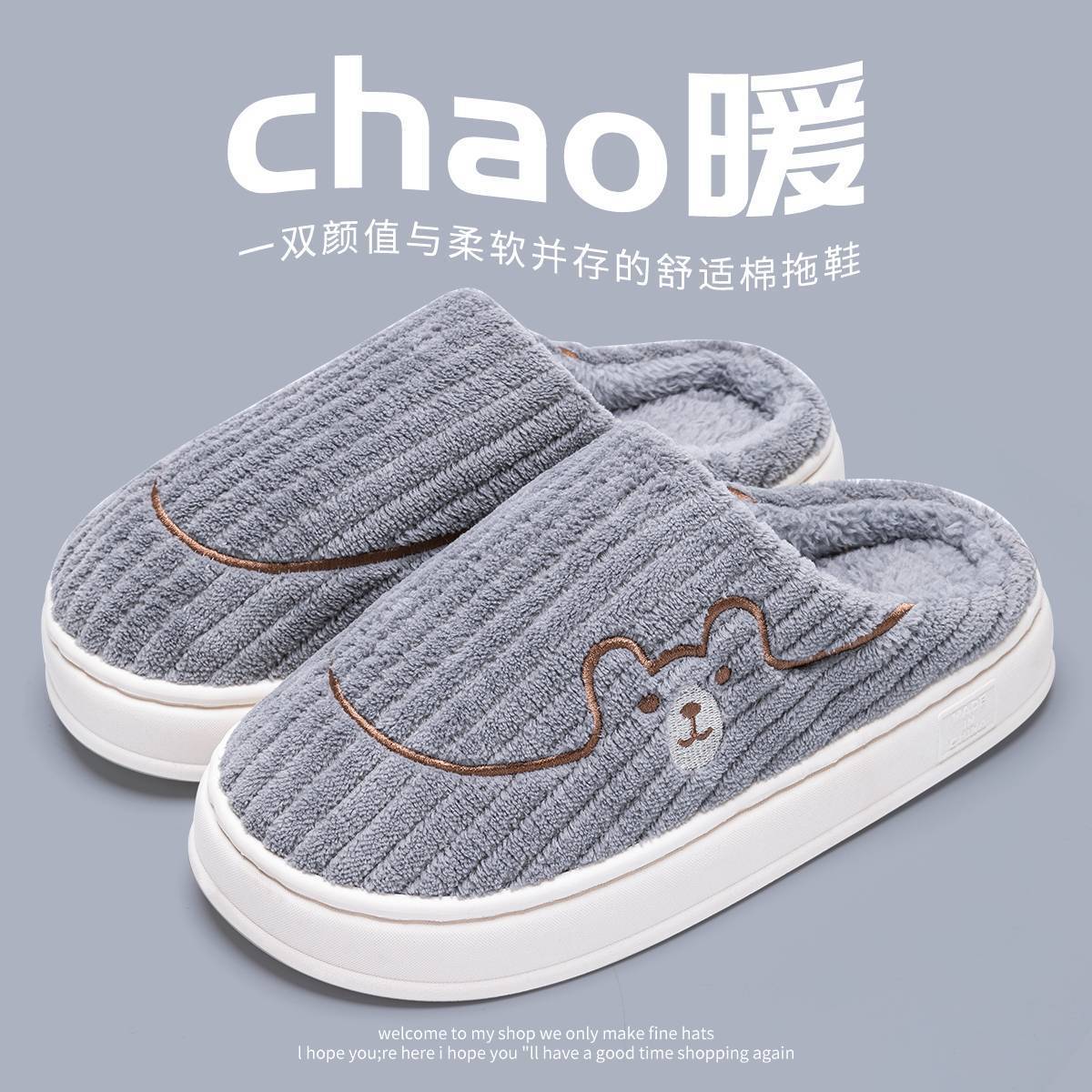 면 슬리퍼 여성의 가을과 겨울 새로운 실내 홈 따뜻한 양모 슬리퍼 남성용 가을과 겨울스토어 가기