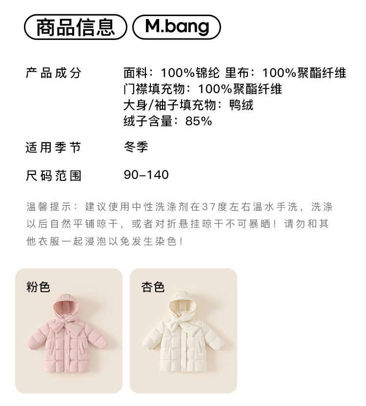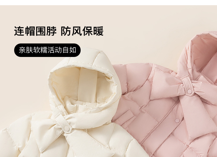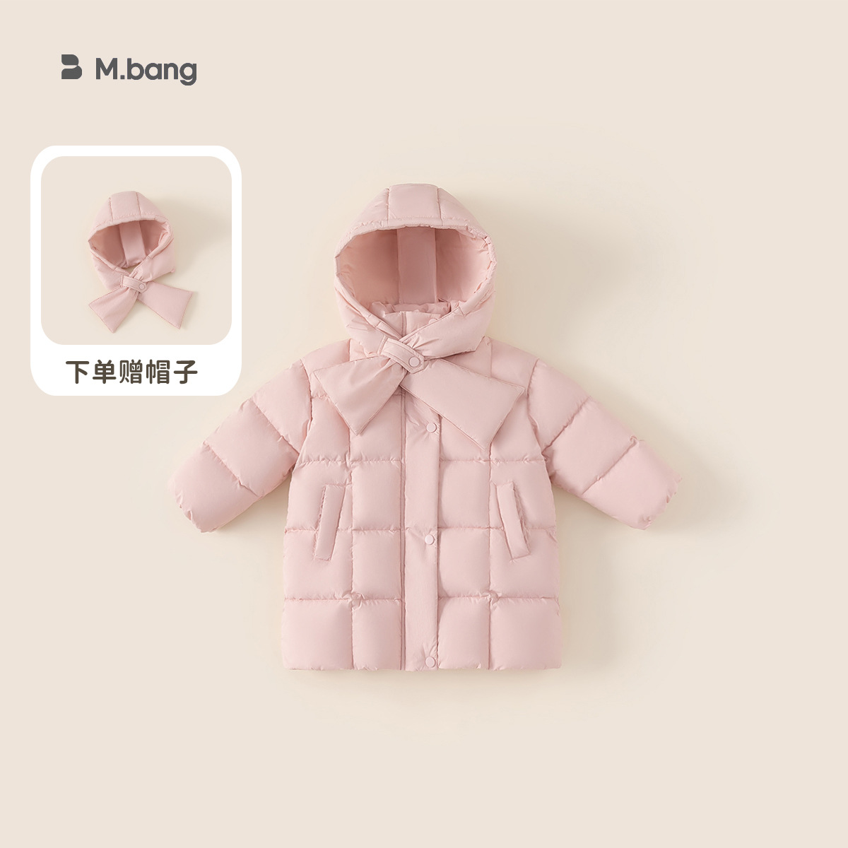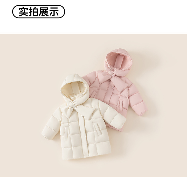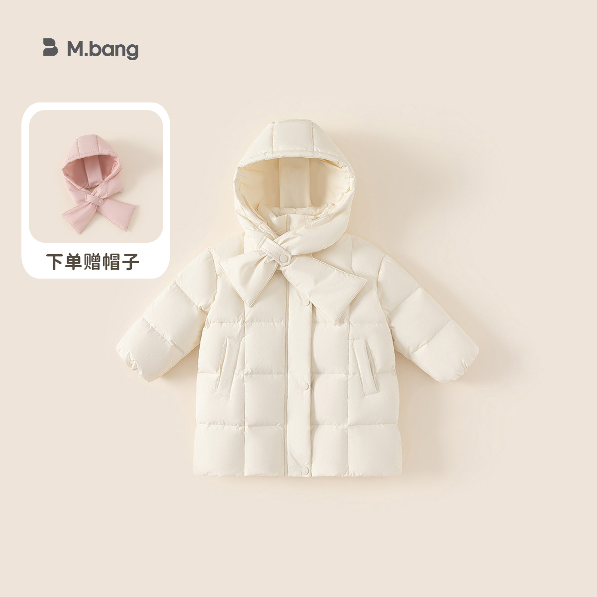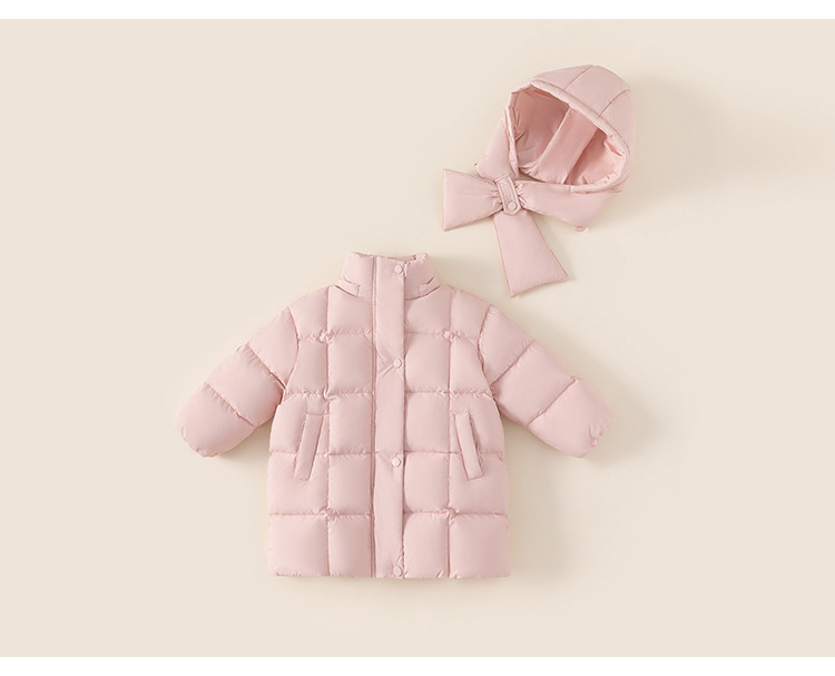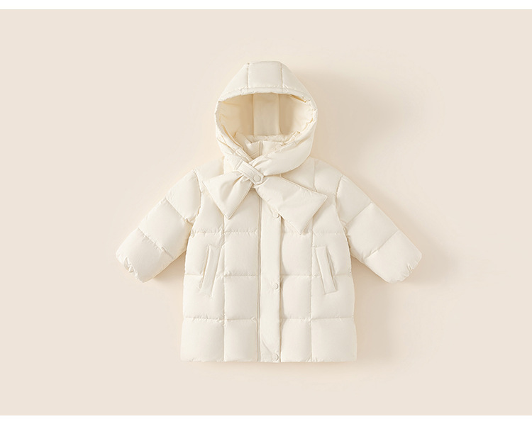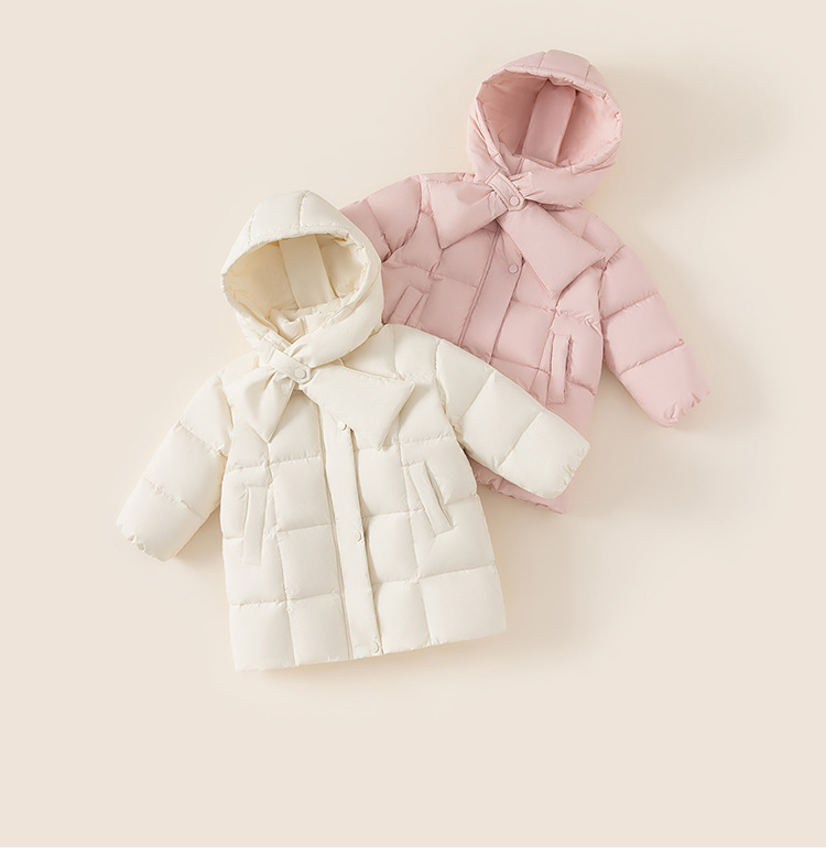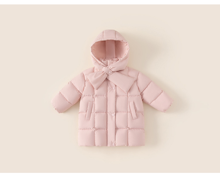 봉 셀렉트 소녀 겨울 롱 다운 재킷 솔리드 컬러 한국 스타일 90 화이트 덕 다운 두꺼운 어린이 후드 다운 재킷