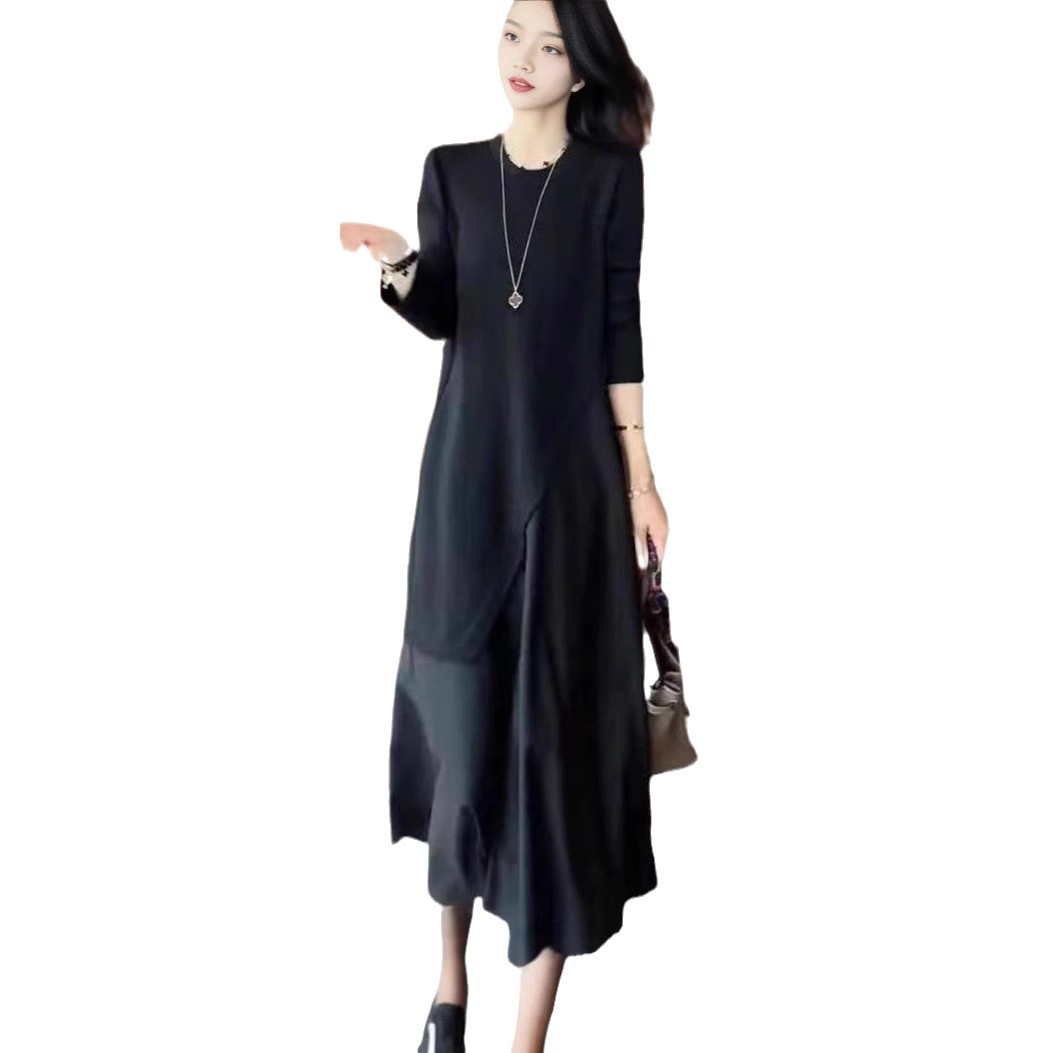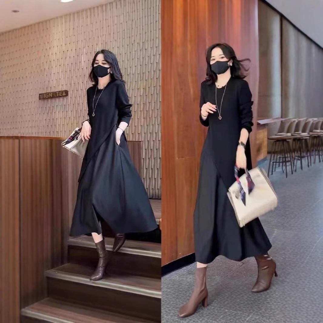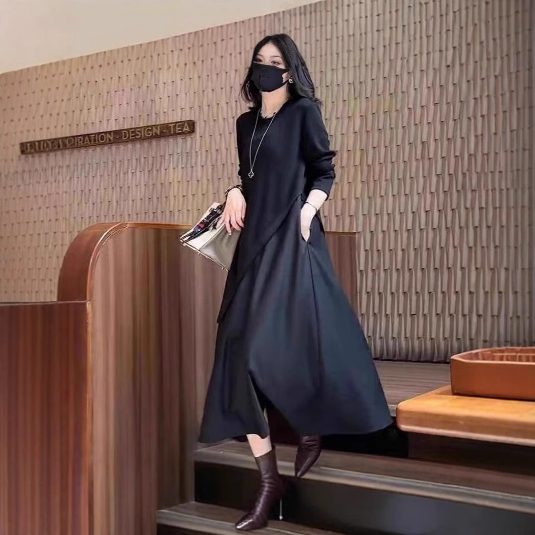 가짜 투피스 불규칙한 원피스 여성의 가을과 겨울 우아한 슬리밍 내베이스 긴팔 바느질 치마