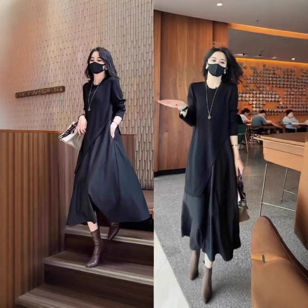 가짜 투피스 불규칙한 원피스 여성의 가을과 겨울 우아한 슬리밍 내베이스 긴팔 바느질 치마스토어 가기